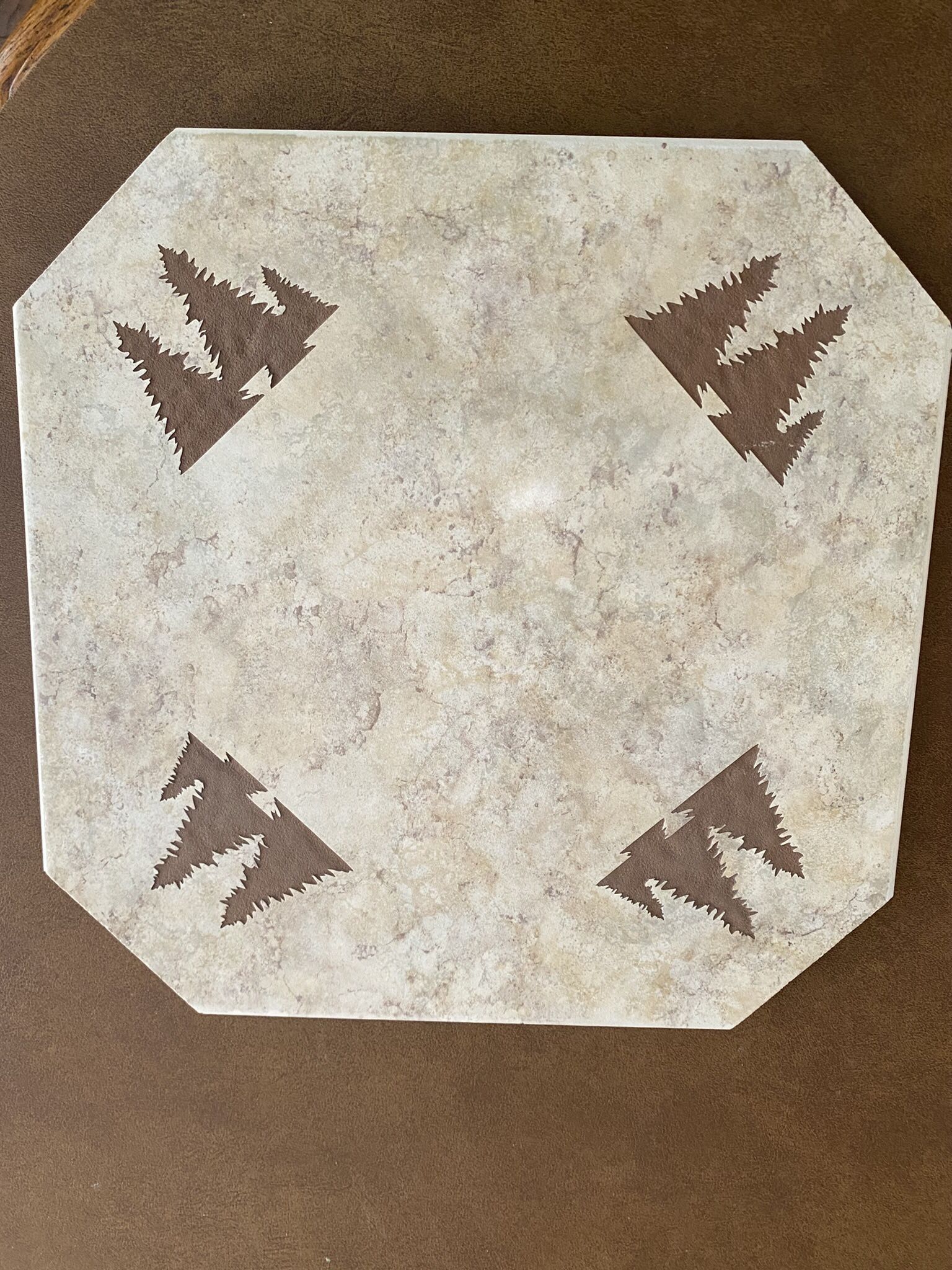 This is a one of a kind new with sandblasted designs in the top the designs are pine trees. The size is 16 x 16. It is mounted on a turnstile with ball bearings. We had a sandblasting shop and after We retired this is what we had left these retailed in the patio doors for $60 and higher