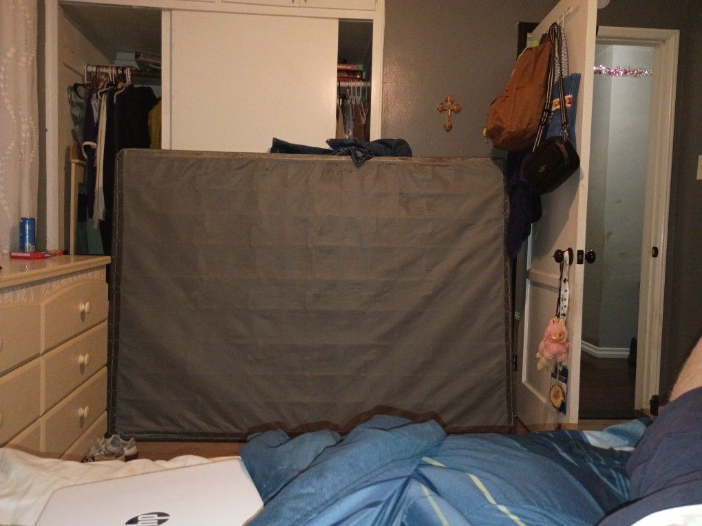 Box spring in good condition there's a hole in the fabric on the bottom but that's all that's wrong with it
