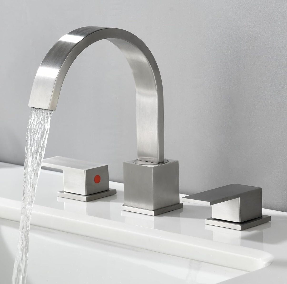 Widespread 8 Inch Brushed Nickel Bathroom Sink Faucet, Waterfall Nickel Stainless Steel Bathroom Faucet For Sink 3 Hole, Vanity Lavatory Sink
