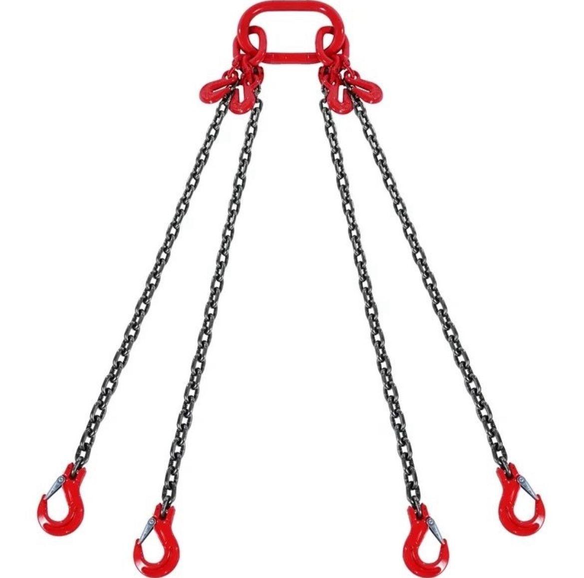 Chain Sling, 3/8 inch x 10 ft Lifting Chains with Hooks, G80 Engine Chain Hoist Lifts, 18400 lbs/8 Ton Lifting Sling Chains for Engine Hoist, Engine Lift Chain with 4 Leg Grab Hooks & Adjusters