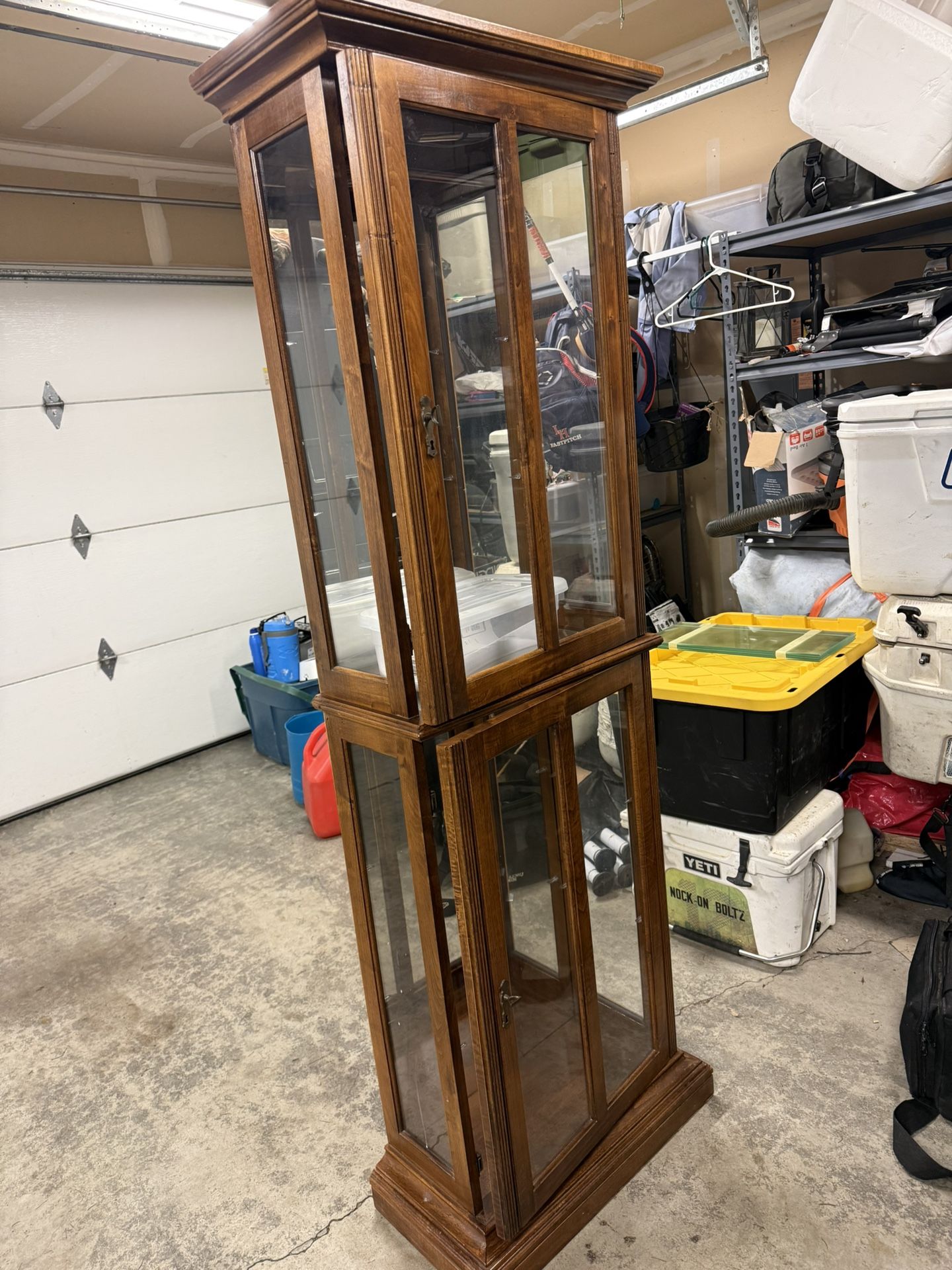Helping Grandma sell her hutch, as she recently moved into a smaller home and doesn’t have room for this. Glass shelves are in perfect condition and lighting works. This hutch is pristine and ready for its next home. Base is 12.5”x25”. Height is 73.5”.