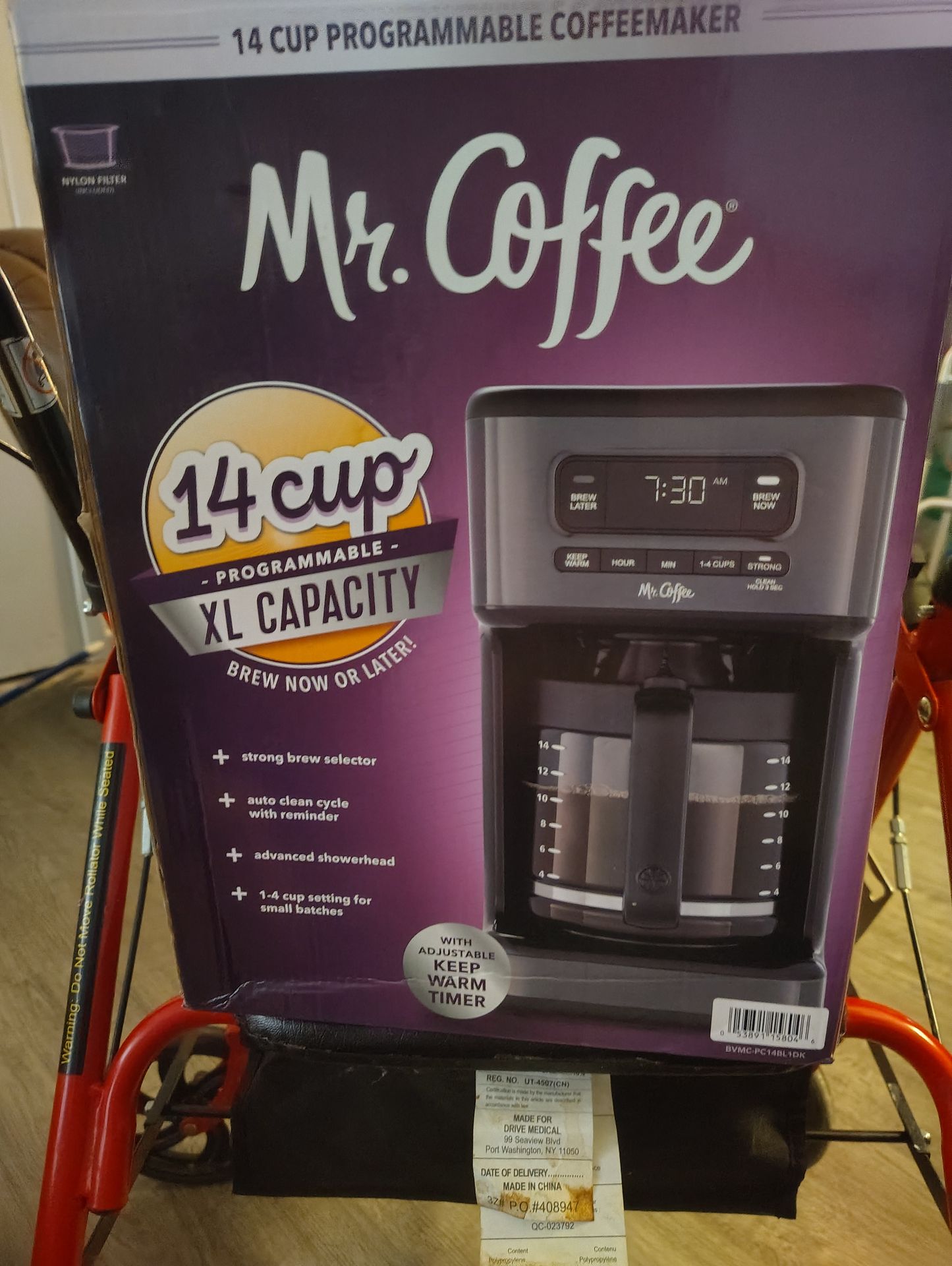 14 cup programmable. XL capacity with adjustable keep warm timer. Black