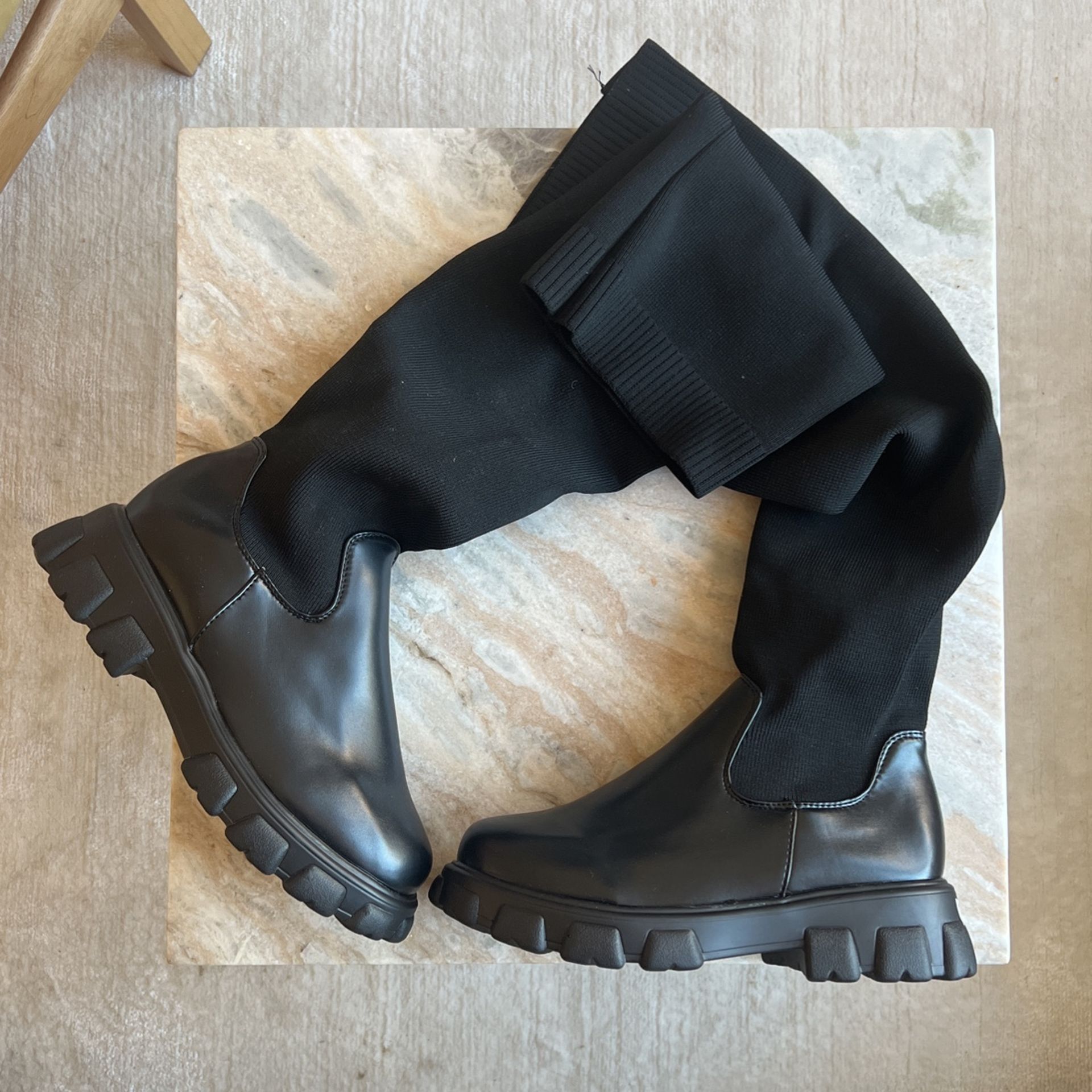Beautiful Over The Knee Lugsole Black Boots