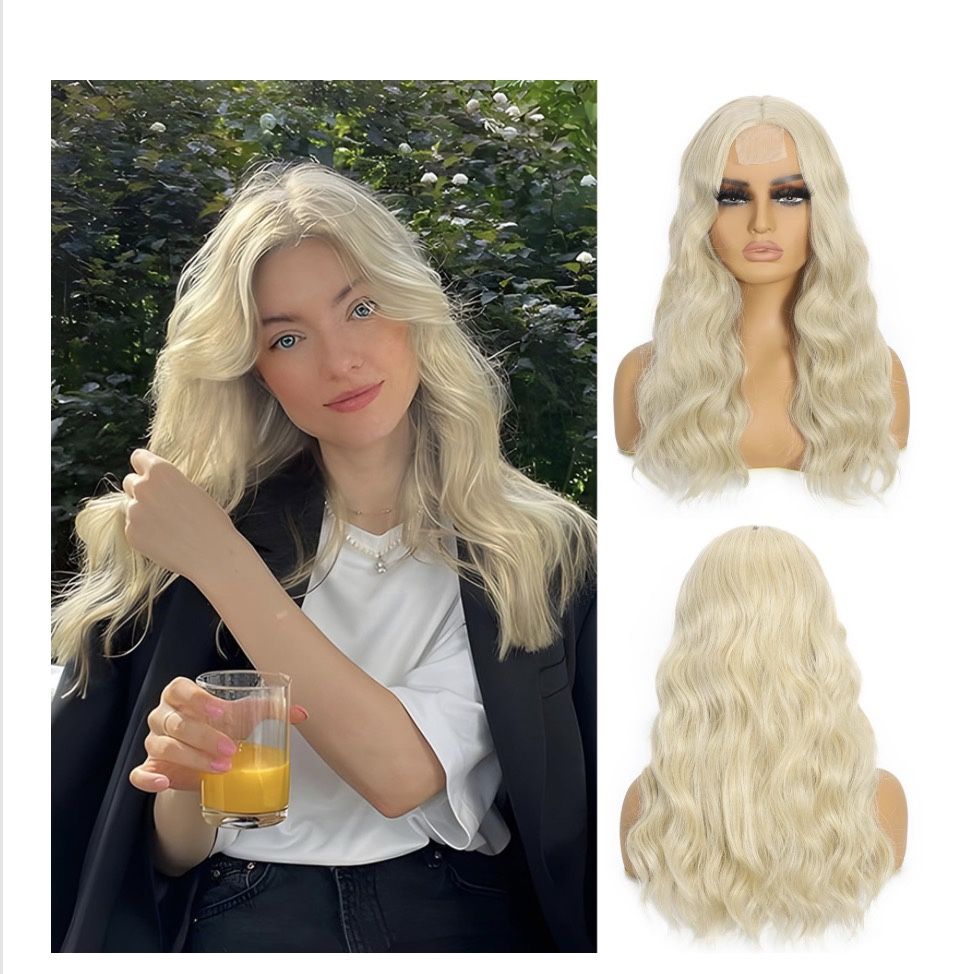 18 Inch Long Blonde Wig For Women | Middle Part Culy Wavy Wig | Heat Resistant & Natural Looking | Lightweight Synthetic Hair For Daily Use, Halloween, Cosplay 2