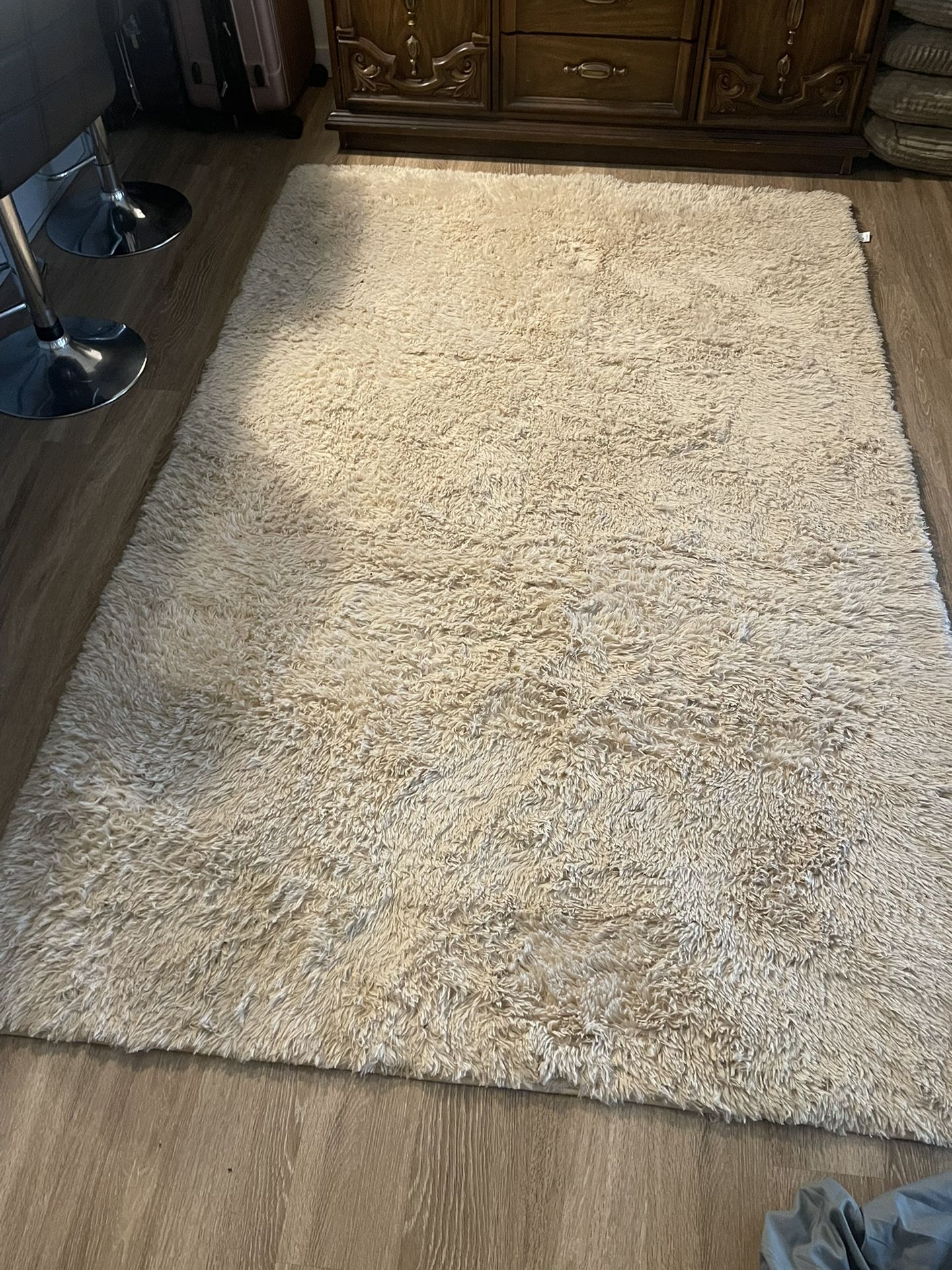 Light pink rug. Super light weight. Will need to tape down. 15$