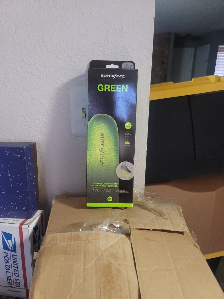 Super feet green shoe insoles. High profile insoles. Good for running, casual, hiking boots or work shoes. You can trim to fit shoe size. $54.99 on amazon