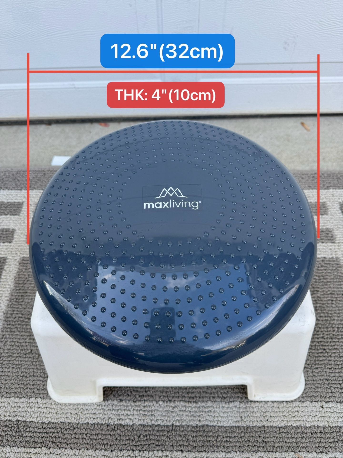 This 12.6"maxliving® exercise ball has the following features: 1. Core strength training: • Unstable surfaces can activate core muscles such as the abdomen, back, and buttocks, enhancing core stability and control. 2. Improvement of balance and coordination ability: • Standing, half squatting, standing on one foot and other actions on the air cushion can help improve body balance and coordination, and is often used for sports rehabilitation or balance training. 3. Improve posture and posture: • Long-term use can strengthen deep stable muscle groups, help improve standing and sitting posture, and prevent problems caused by poor posture. 4. Rehabilitation and physical therapy assistance: • Commonly used for balance training after surgery or injury to enhance muscle control and reduce the risk of re-injury. 5. Multi-functional training methods: • Can be used for standing, sitting or kneeling position training, can also be held for push-ups, core support and other exercises, increase the challenge of movement. 6. Non-slip particles on the surface have no juice: • Convex points at the top increase friction, improve safety and avoid slipping during training. 7. Portability and durability: • Lightweight material, easy to carry; High quality PVC Material, with good elasticity and load-bearing capacity, suitable for home or gym use. Almost new condition is good.