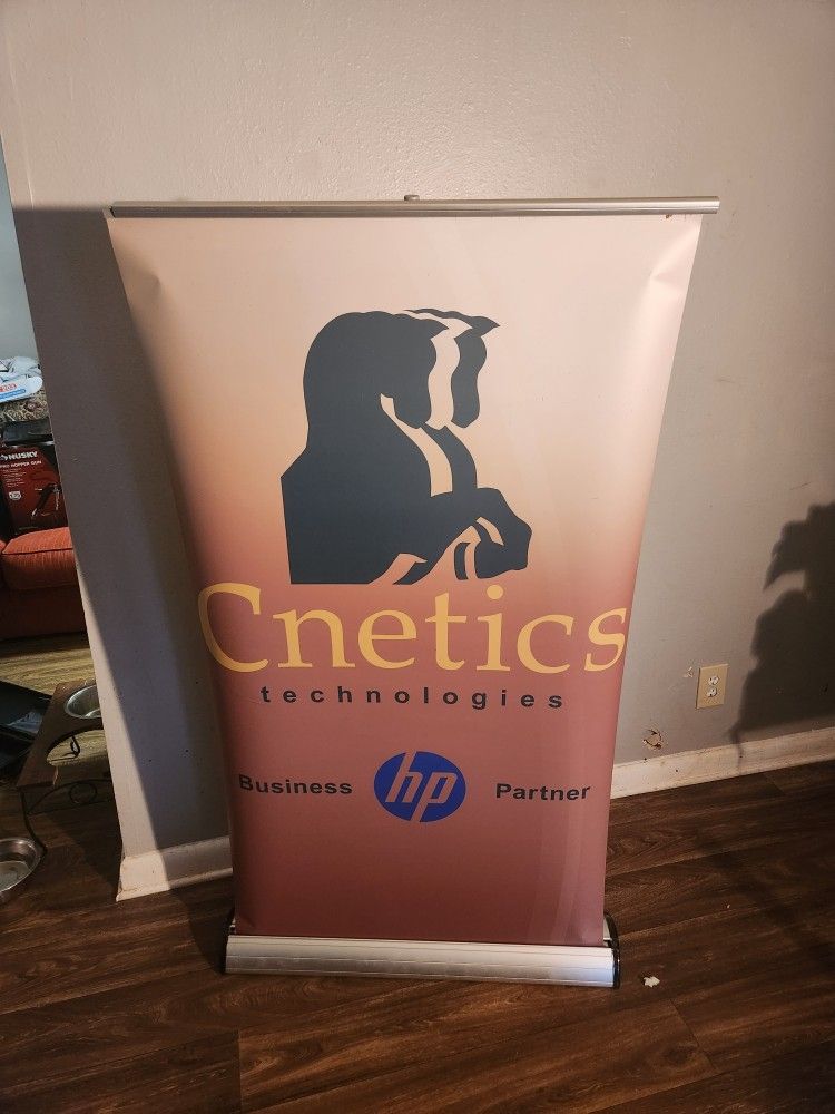 For sale two retractable banners with cases One goes up to 7.3 feet Grey one goes up to 10 feet Obo