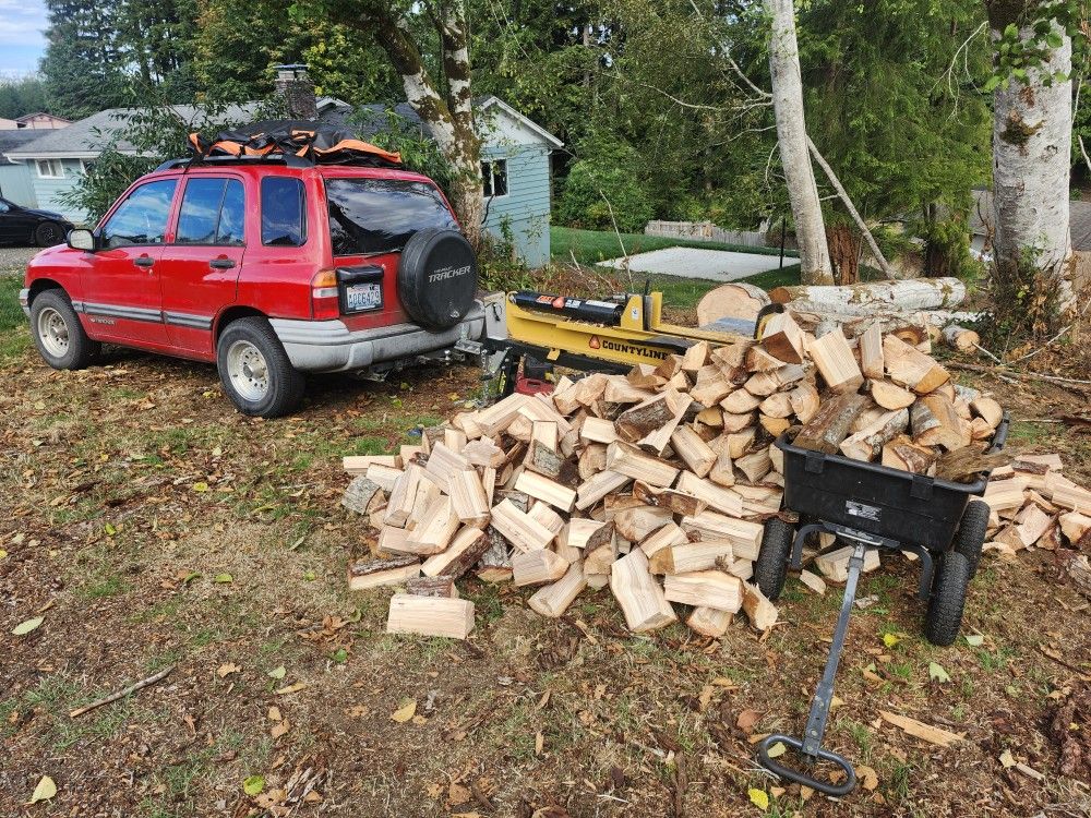 Chords of wood $250 alder or hemlock or both $300 delivered wood is still fairly green it has been down for a couple of months and split recently