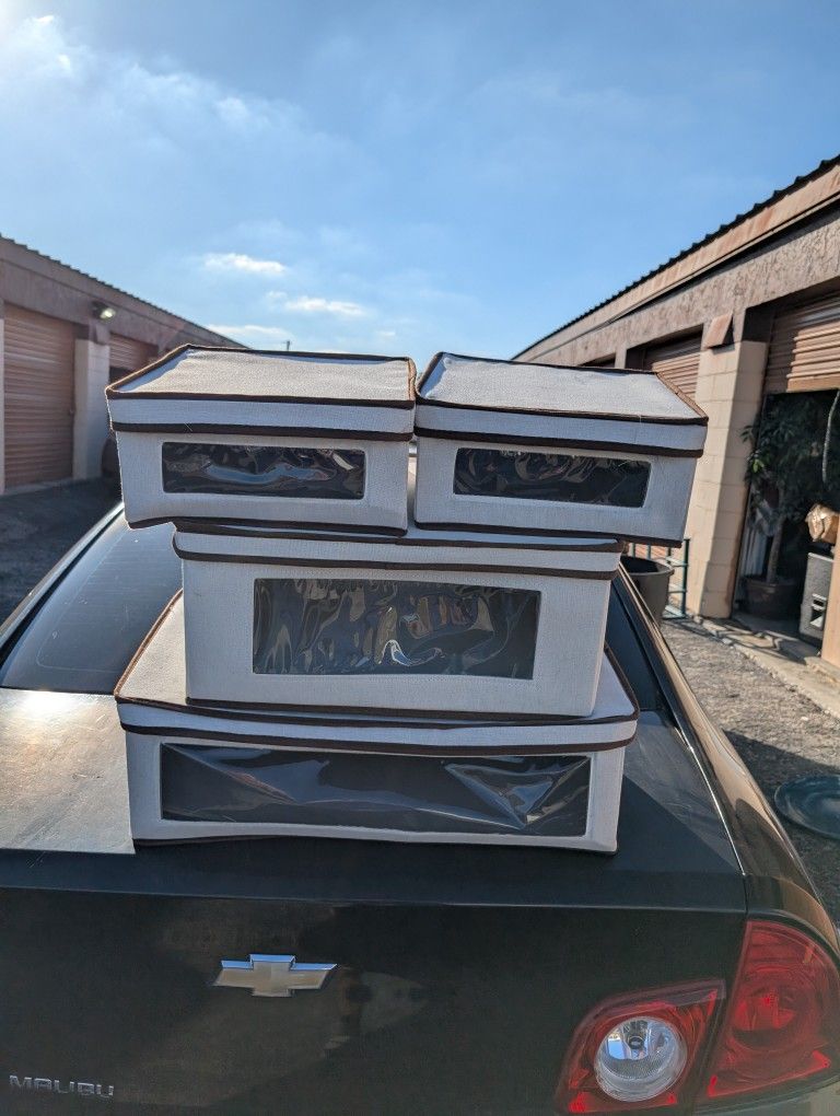 Four vision boxes. They're all fabric with see-through sides with lids