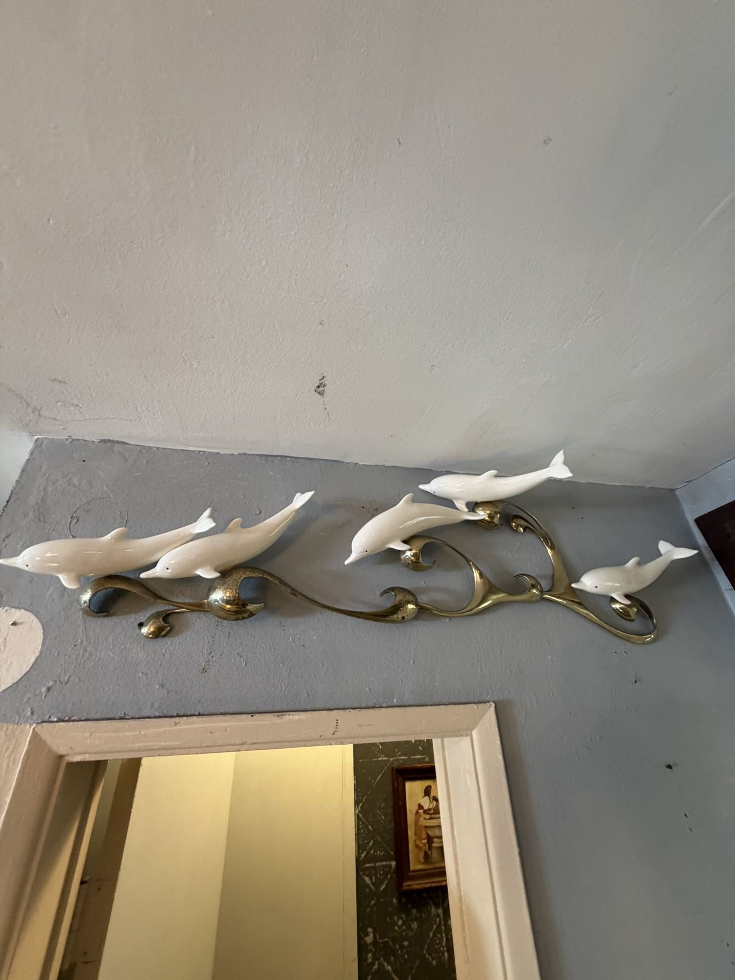 Mid Century Signed By The Artist Brass Base And Dolphins