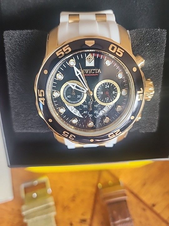 BRAND NEW INVICTA WATCH GOLD AND BLACK TONE WHITE SILICONE BAND