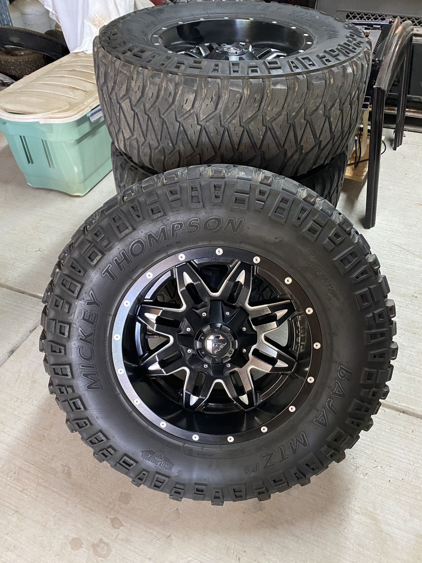 6 lug fuel 18” wheels with Mickey Thompson Baja mtz 35x12.50
