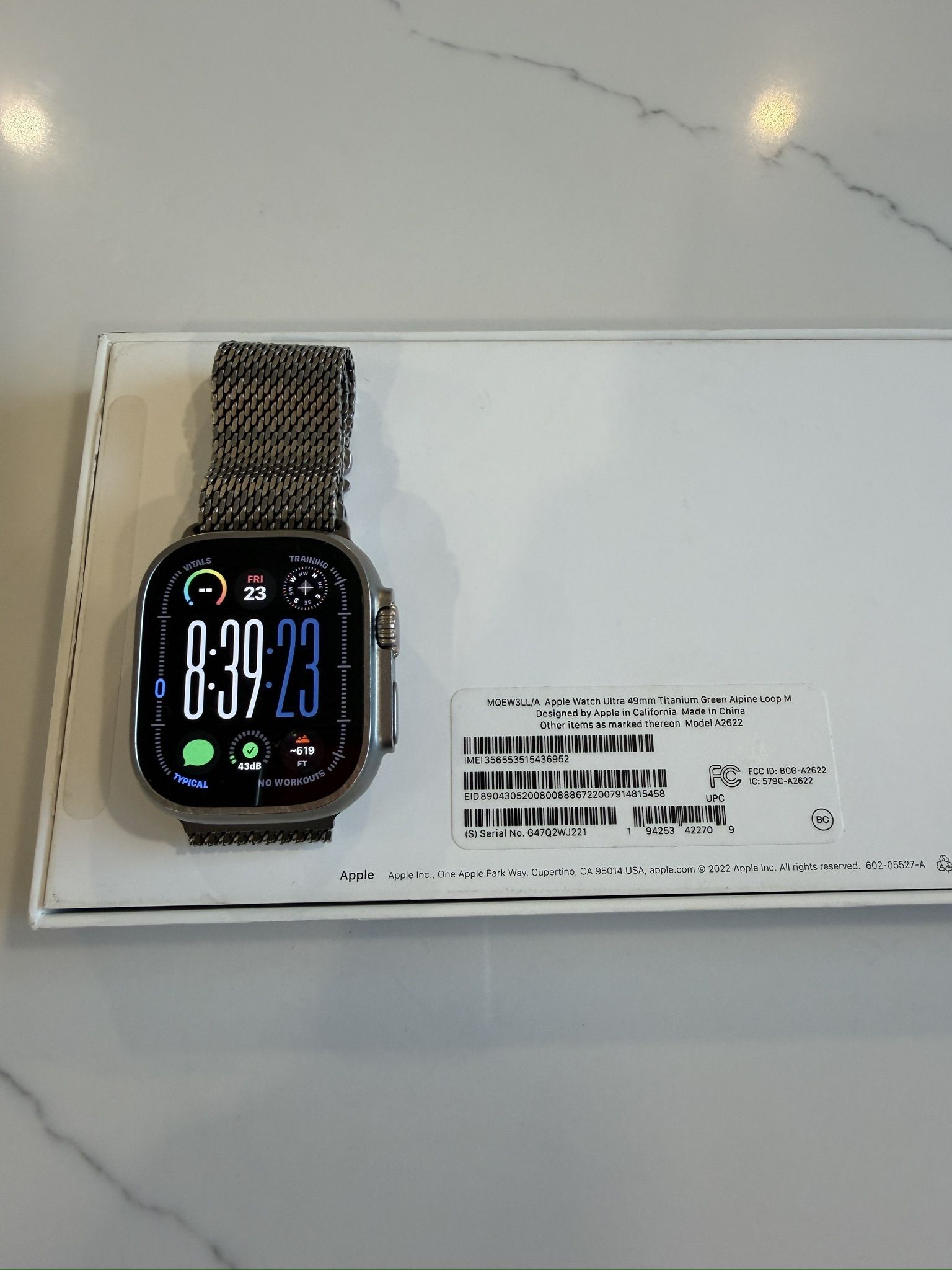APPLE WATCH ULTRA 2 NATURAL EXCELLENT CONDITION WITH BOX & CABLE 91% BATTERY HEALTH MULTIPLE BANDS APPLECARE ELIGIBLE $400 PICKUP HARLEM & IRVING CHICAGO CHECK OUT MY OTHER LISTINGS I ACCEPT TRADES