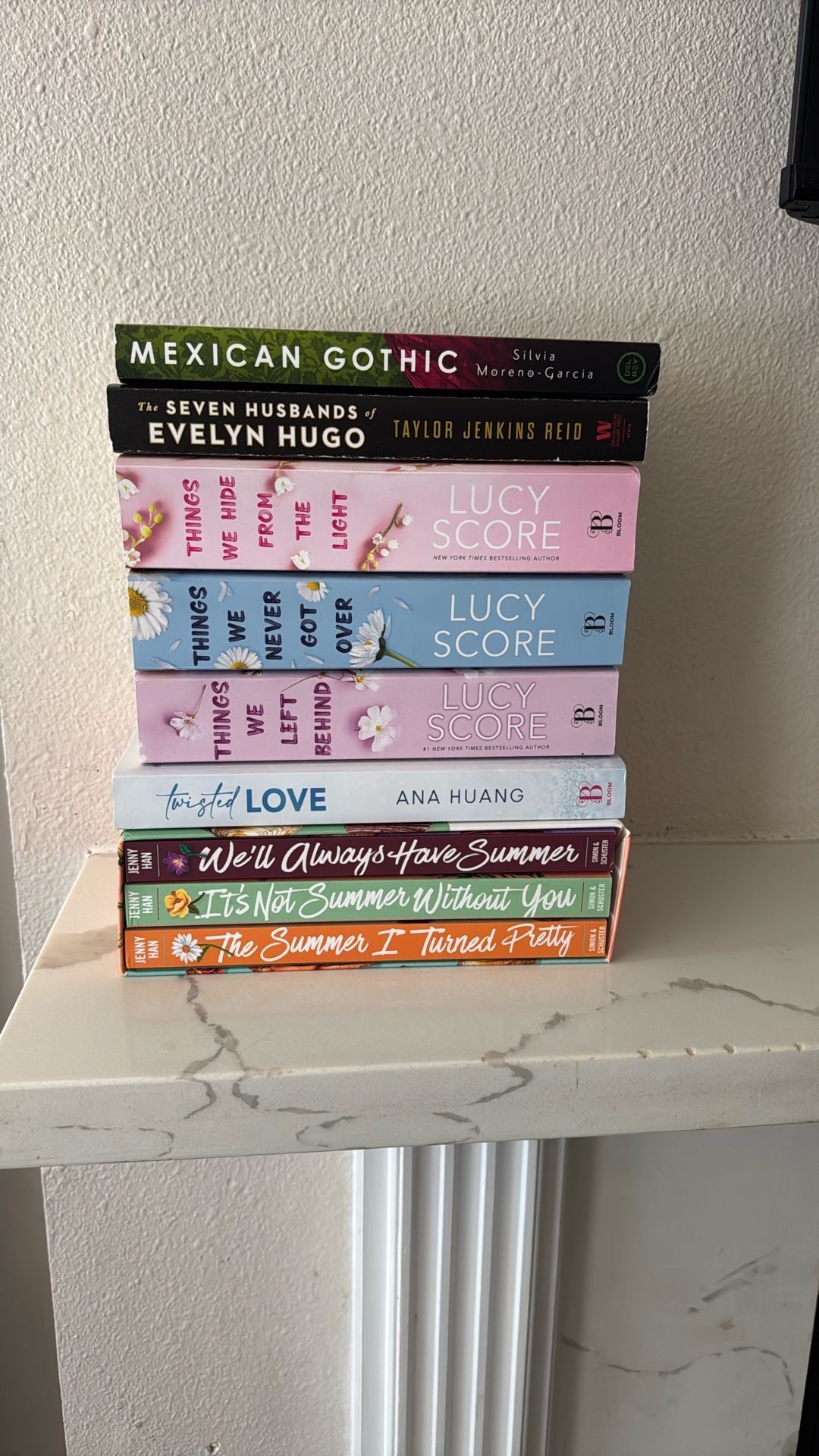 Must take all. Mexican Gothic The seven Husbands of Evelyn Hugo Things we left behind Things we never got over Things we hide from the light Twisted love Complete Summer I turned Pretty series