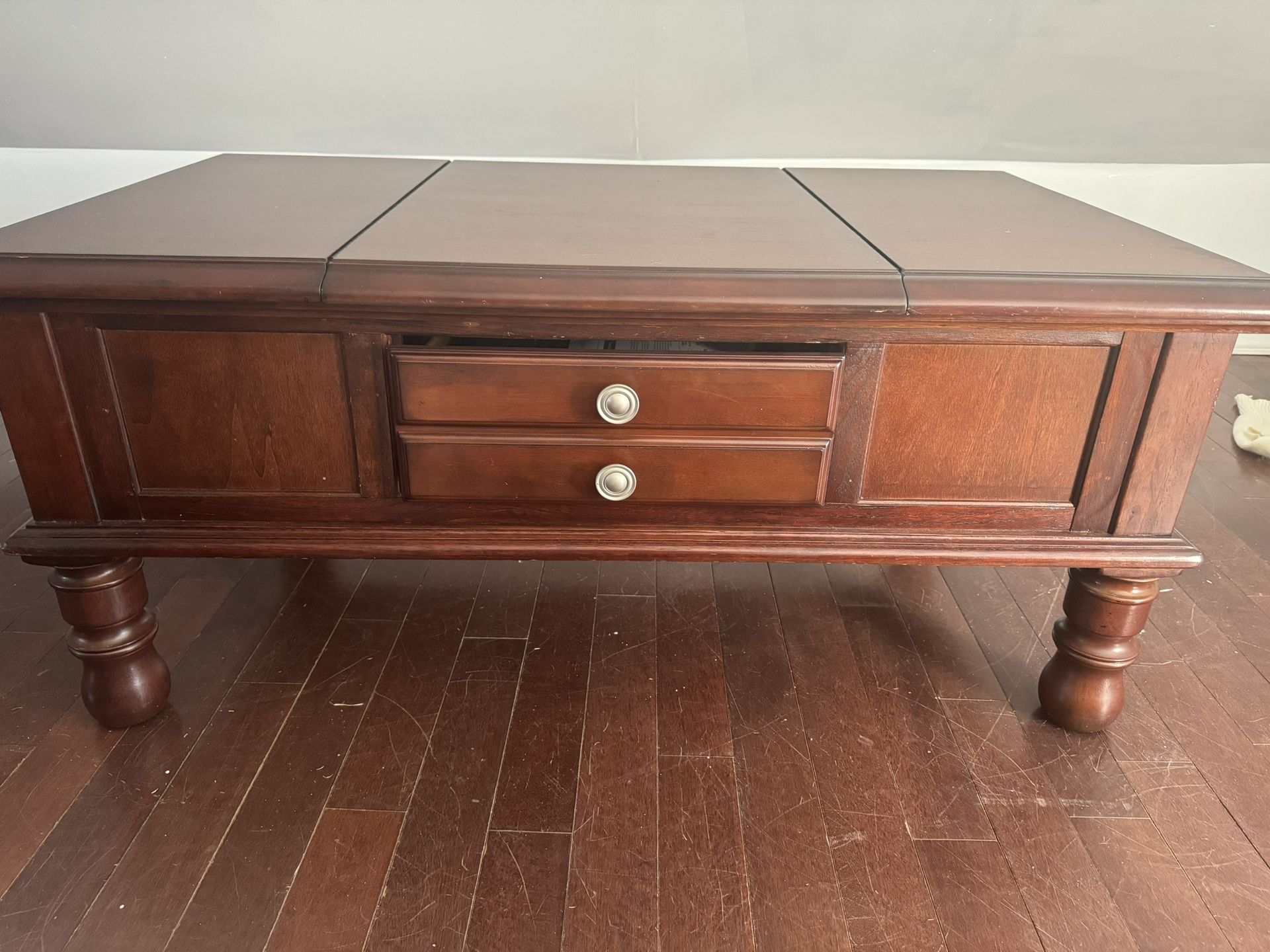 Mahogany Pure Wood Coffee Table with additional storage on sides. Great condition and no scratches very strong wood.