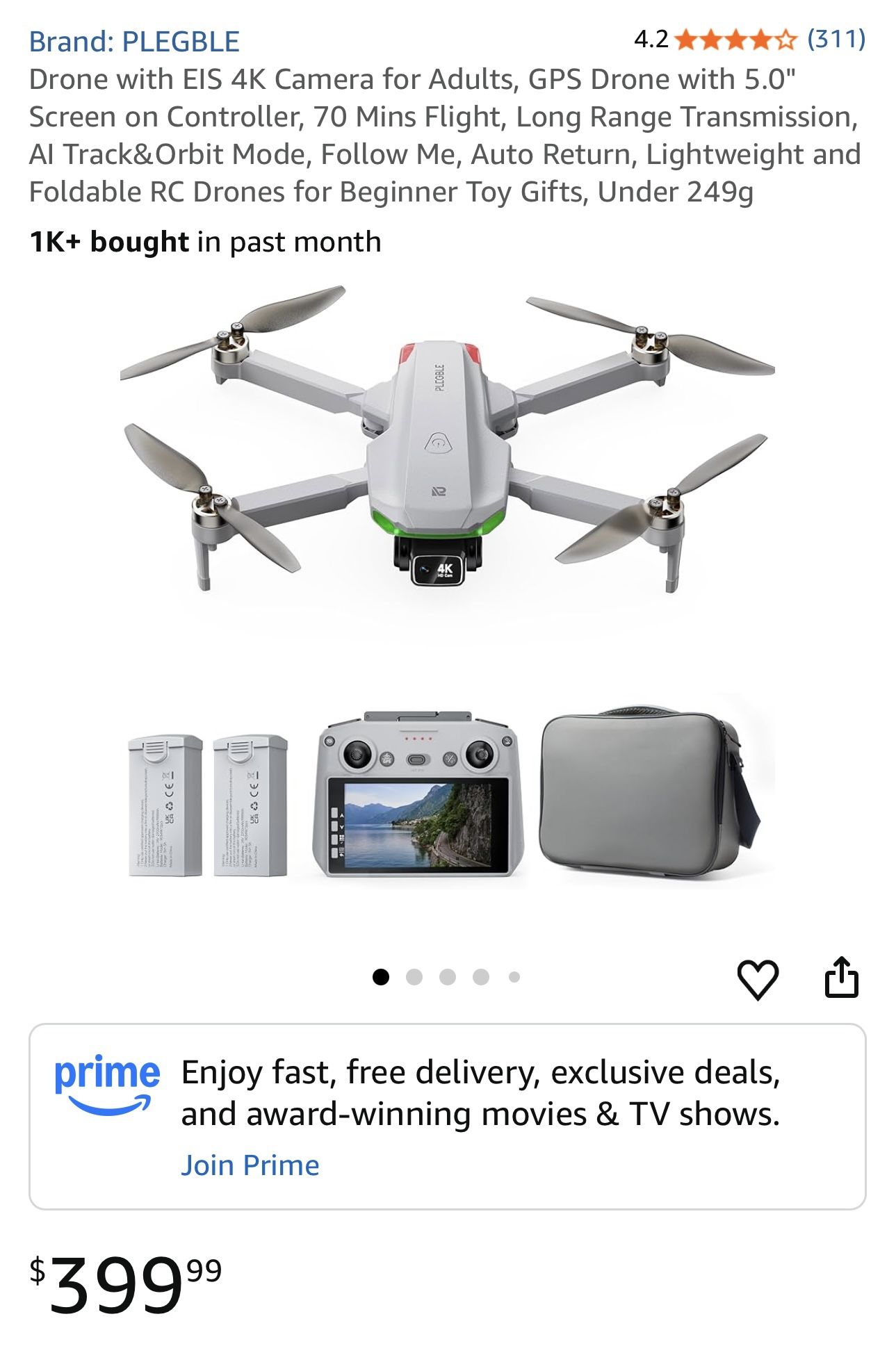 4K GPS DRONE Plegble PL-710 lightweight, foldable Brand new- Down from $ 400.00 to FIRM LISTED PRICE Pick up by appointment 9am-6:30pm in Chandler Az Plegble PL-710 is a lightweight, foldable 4K GPS drone designed for beginners and adults, featuring a controller with a built-in 5-inch screen for FPV (First Person View) without needing a phone, EIS (Electronic Image Stabilization) for smooth video, brushless motors, smart flight modes (Follow Me, Orbit), and long flight times with dual batteries, all under 249g for no FAA registration. 4K Camera with EIS: Captures high-resolution video with image stabilization. Built-in Screen: The remote controller has a 5-inch HD screen for live FPV, eliminating the need for a smartphone. GPS & Smart Modes: Includes GPS for stable flight, Auto Return, Follow Me, Tap Fly, and Orbit modes. Brushless Motors: Offers improved stability, efficiency, and lifespan compared to brushed motors. Long Flight Time: Comes with dual batteries for up to 70 minutes of flight time. Lightweight & Portable: Weighs under 249 grams, so it generally doesn't require FAA registration in the US. Plug-and-Play: The integrated screen offers instant FPV and easy access to settings without needing a phone app. Easy Controls: Buttons for auto takeoff/landing, GPS return, speed control, and camera pitch adjustment are on the controller. Feature Auto Follow, Integrated GPS, Long Battery Life, Long Distance Control, One Button Return Item# 1440