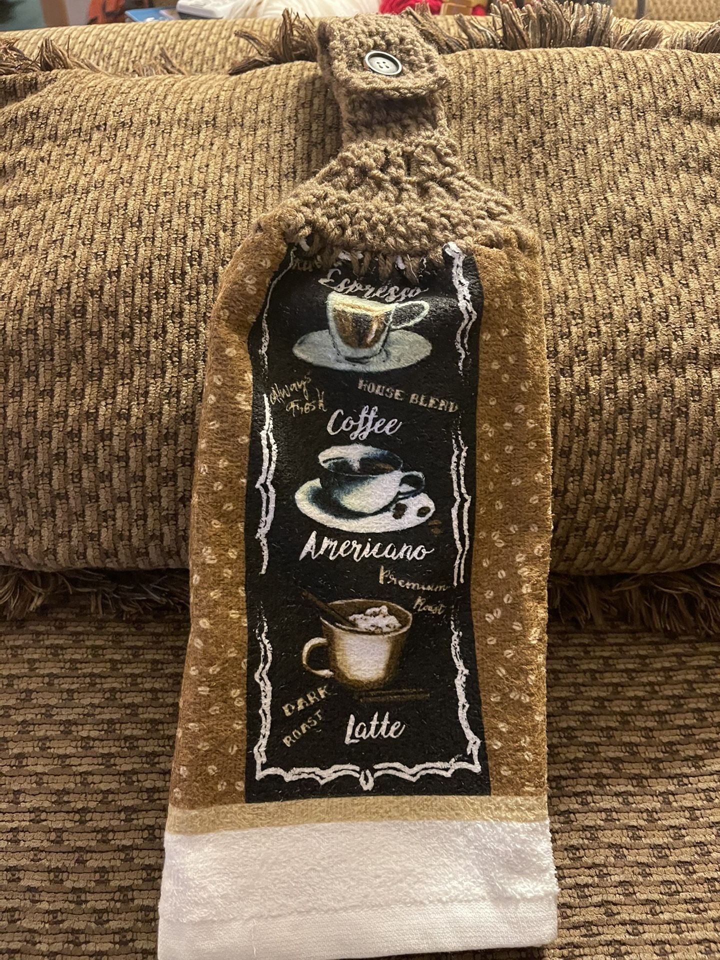 Handmade kitchen towel full towel can hang on oven door or kitchen cabinets makes nice deco or gift smoke free home
