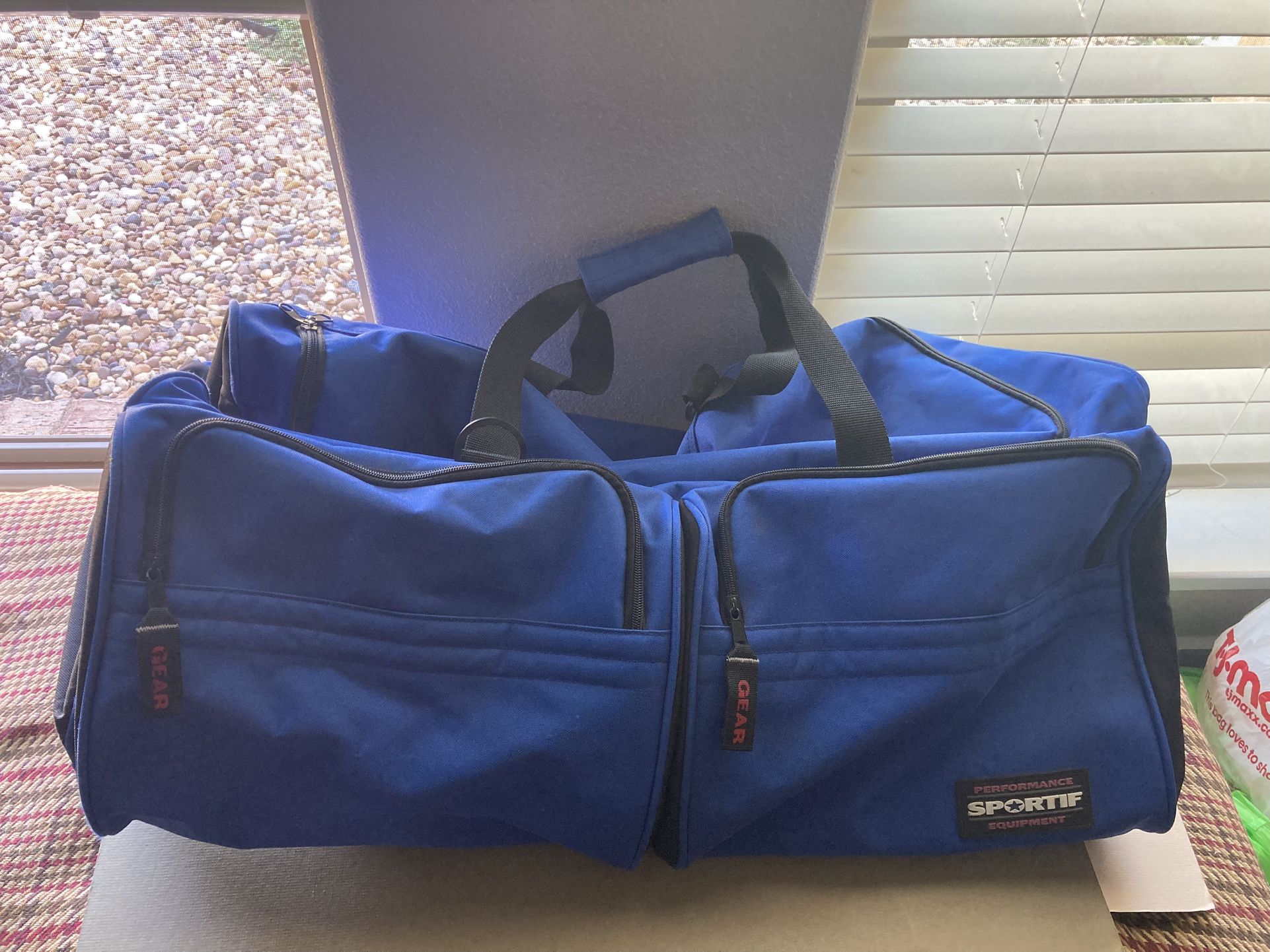 Sport/Gym/Travel Duffel Bag - Performance SPORTIF Equipment Large Blue Duffel Gear Bag, Canvas, 2 wheels. Vintage