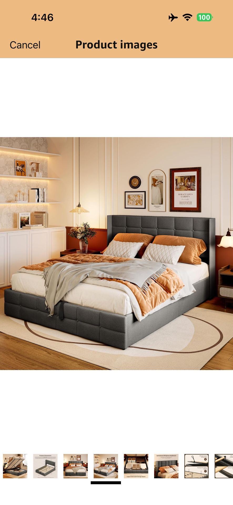 Queen Lift Up Storage Bed with Storage, Upholstered Platform Bed Frame with Modern Wingback Headboard, Woodern Slats Support, Hydraulic Support, No Box Spring Needed, Grey color- **Queen Mattress is included** **pillows and sheets shown not included** Zelle/venmo/cash only must be willing to pickup and dissasemble to remove from condo. (Its very easy, just a few bolts)