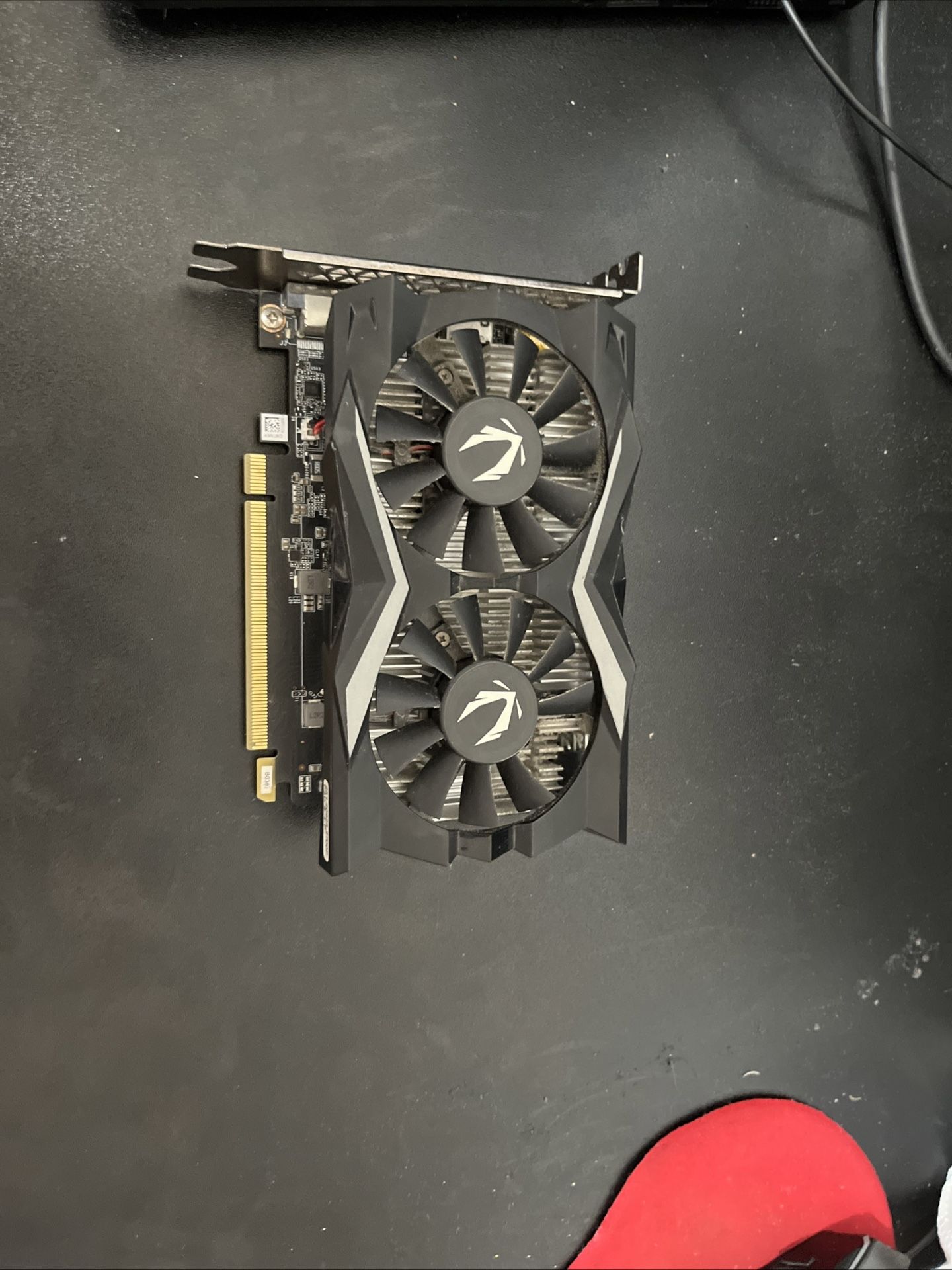 The ZOTAC GeForce GTX 1650 SUPER 4GB GDDR6 Dual Fan HDMI Graphics Card is a high-performance GPU designed for gaming and graphic-intensive tasks. With NVIDIA GeForce GTX 1650 SUPER chipset, 4GB GDDR6 memory, and dual fans cooling system, this card delivers smooth and immersive gaming experience. It features DisplayPort, DVI, and HDMI connectors, making it versatile for various display setups. Compatible with PCI Express 3.0 x16 slots, this graphics card from ZOTAC is a solid choice for gamers and content creators looking for a reliable and powerful GPU solution. Flawless condition 1 fan blade is missing however doesn't affect the item at all. Barely used since I have another GPU which is my main one.