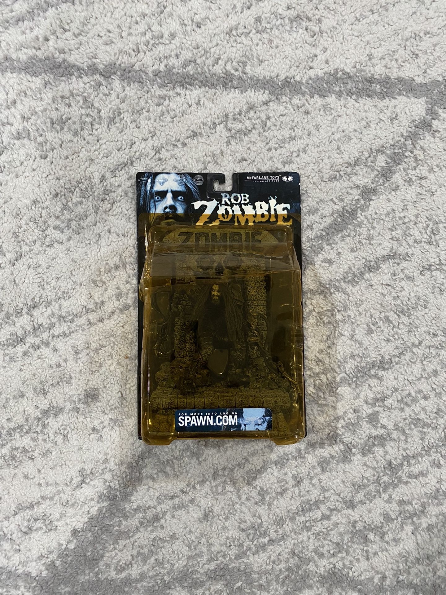 McFarlane Toys Rob Zombie Music Figure brand new in box Damaged and discolation on clamshell. Not looking for any trades.