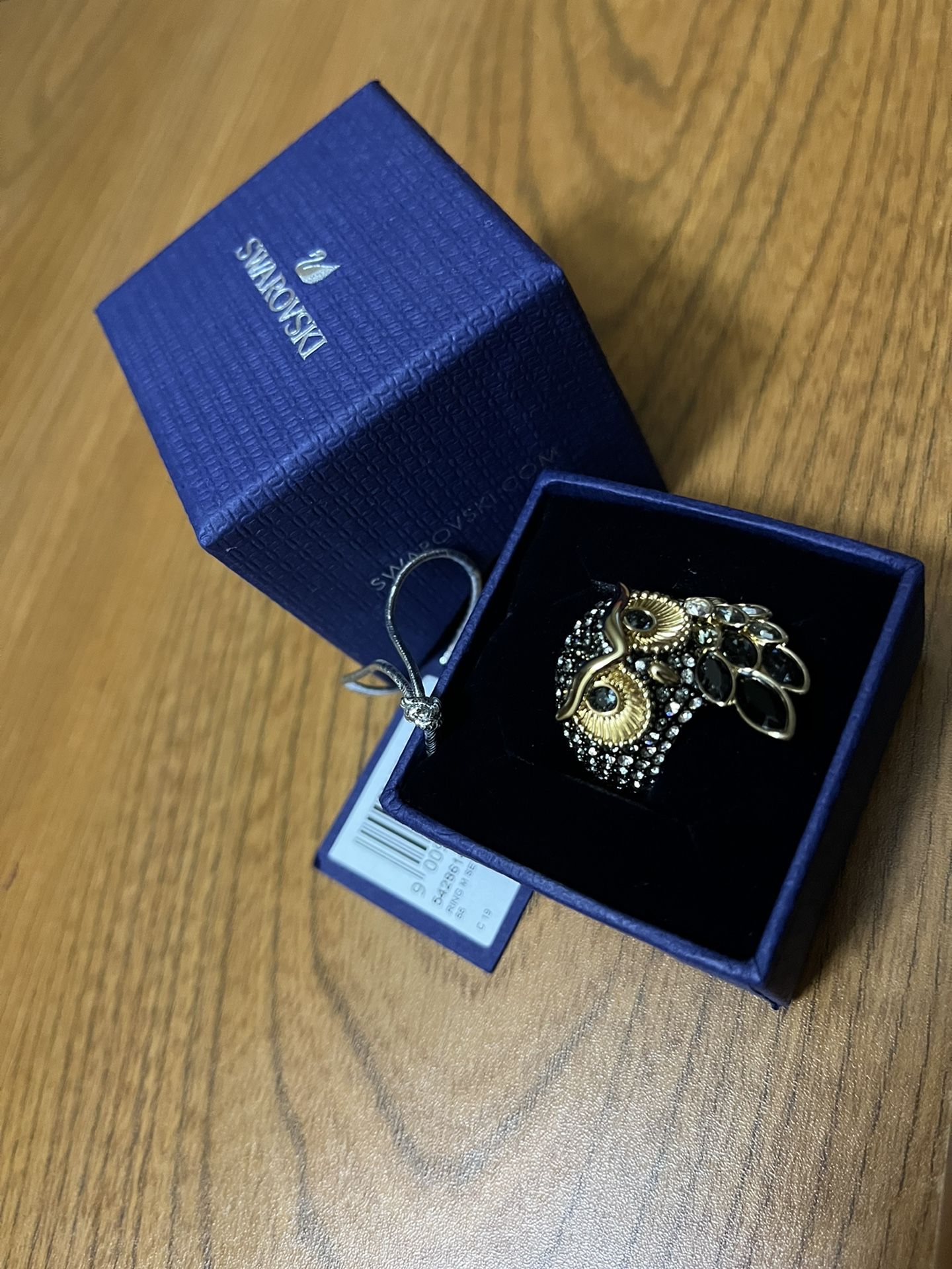 Swarovski Owl Motif Ring Like new. Multi-colored with gold plating. Comes in the original box. Size 55