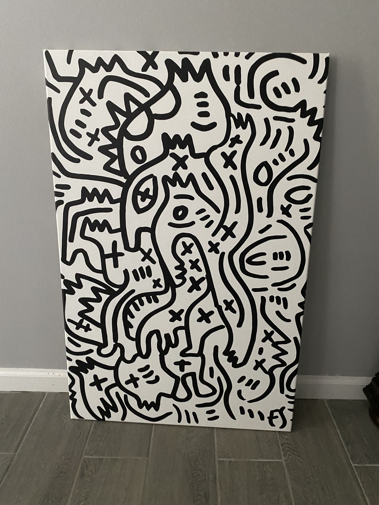 Black & White Graffiti Creatures Canvas by Emmanuel Signorino