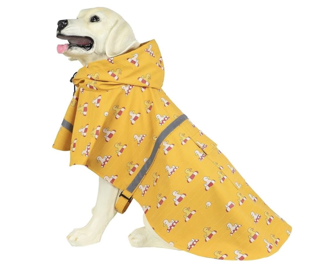 Brand New out of packaging dog raincoat. • High waterproof keeps pets dry in the rain • Lightweight and Easy to Wear On the Dogs • Dog Raincoat offers reflective strips in its design, ensures visibility of your dog no matter where he treads. • Highly adjustable belly strap of raincoat and leg straps