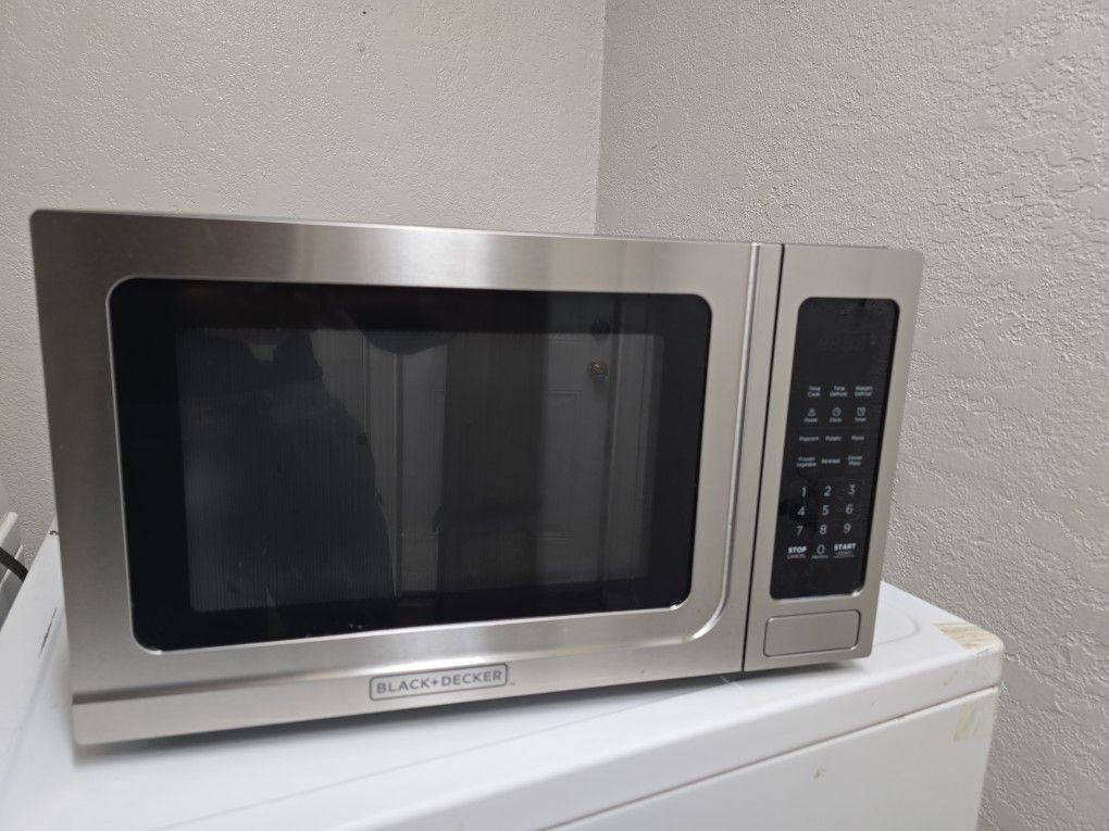 Selling my Black + Decker microwave in great condition. Purchased for $160 and very well maintained. I just steam-cleaned it, so it’s fresh, sanitized, and ready for a new home. Works perfectly Clean + well taken care of No dents, major scratches, or issues Perfect for a kitchen, office, dorm, or break room.