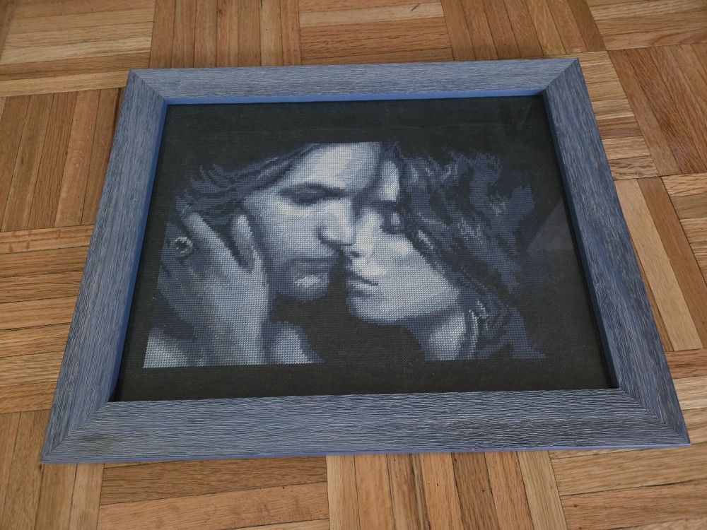Beautiful, handmade Lovers cross stitch in frame with glass. 16.5x13.75 inches. Pickup in West Hollywood
