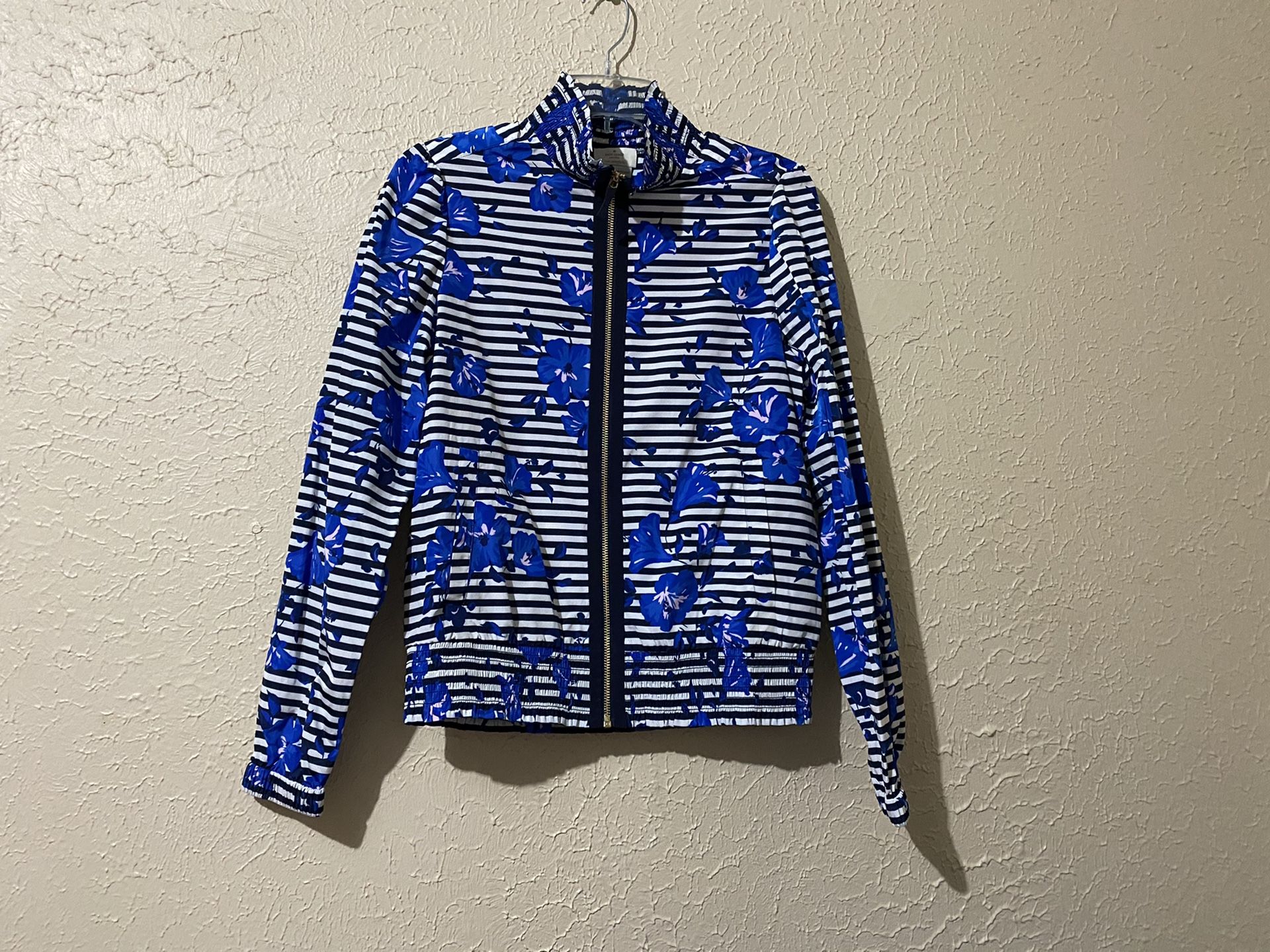 Brand New Kate Spade Hibiscus Stripe Jacket with pockets Rich Navy (473) Size S