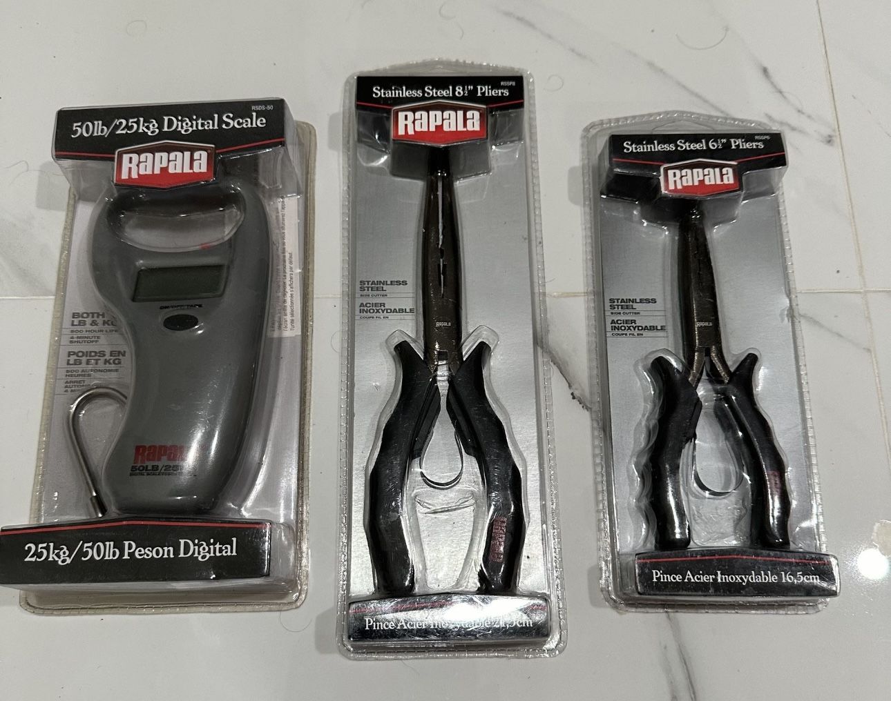 Brand new 50# digital scale, and 2 stainless fisherman’s pliers.