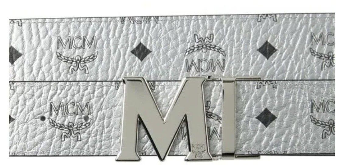 mcm white leather belt reversible silver buckel