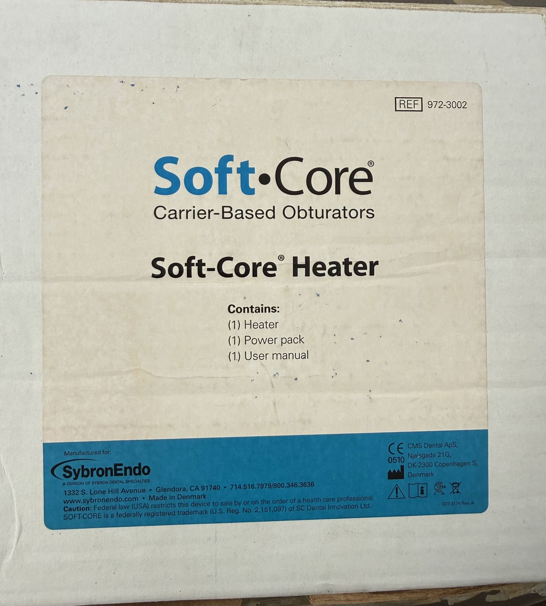 New Soft-Core Carrier-based Oburators Heater with power pack Includes multiple plugs and a power adapter. Still in original packaging. SybronEndo Soft-Core Heater