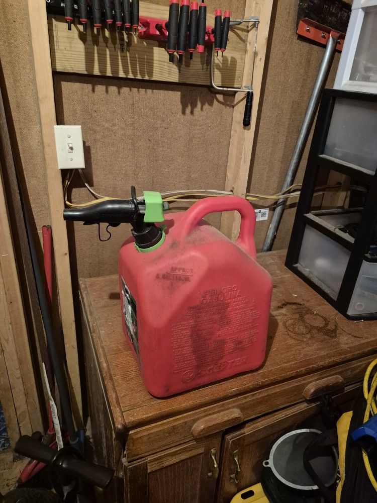 5 Gallon Gas Can Bought it new for around $25 like the picture shows Making space in my shed, this is an extra gas can Easy to Pour Spout Instructions on proper use are still on the can Spout alone costs $10 at Walmart