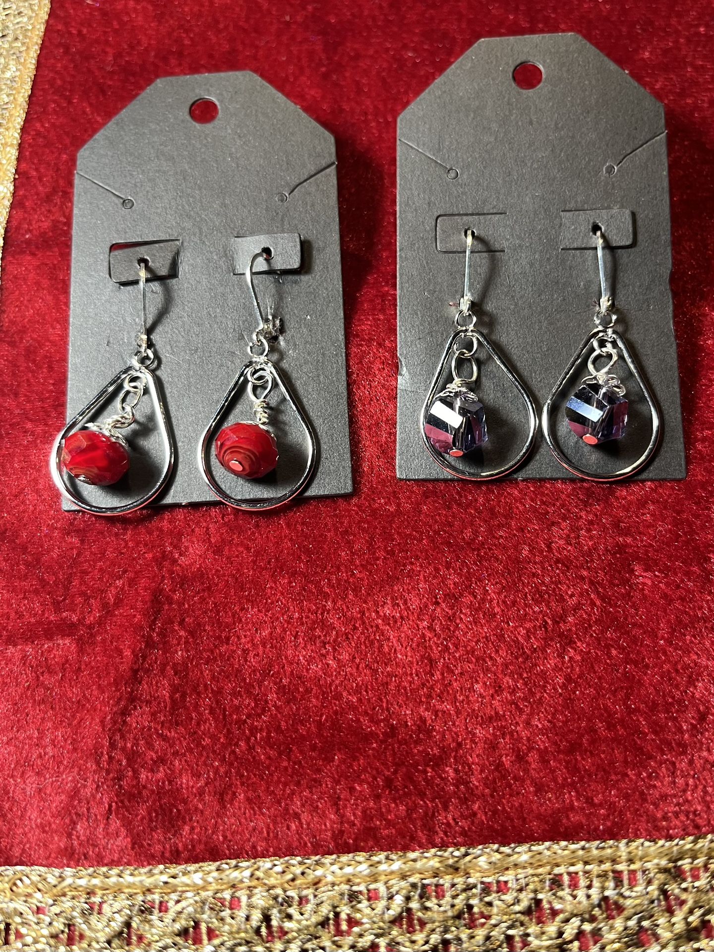Handmade Silver plated wire, crystal beads $8 a pair Free Shipping