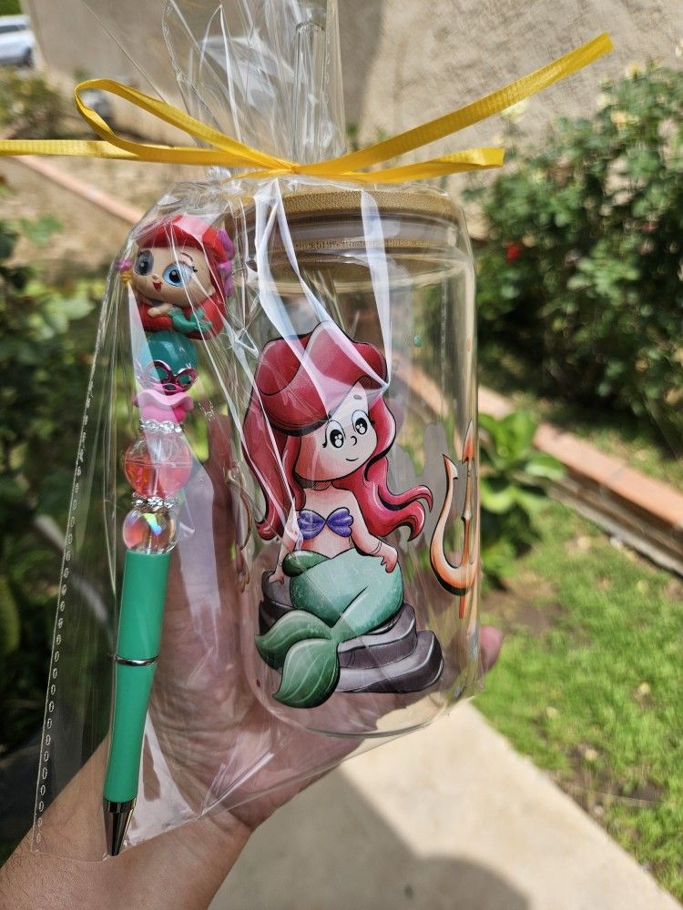16oz glass cup with beaded pen Pick up Jurupa Valley