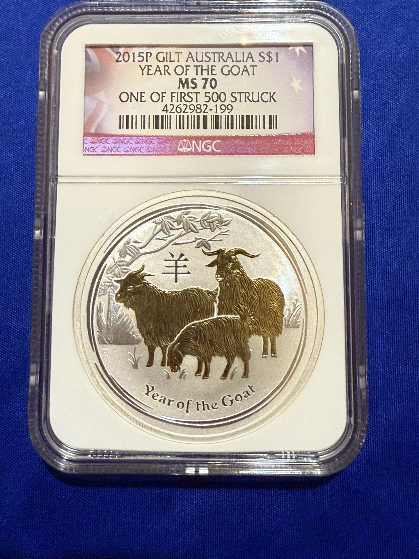 2015 1oz GILT AUSTRALIA YEAR OF THE GOAT NGC MS70 SILVER COIN