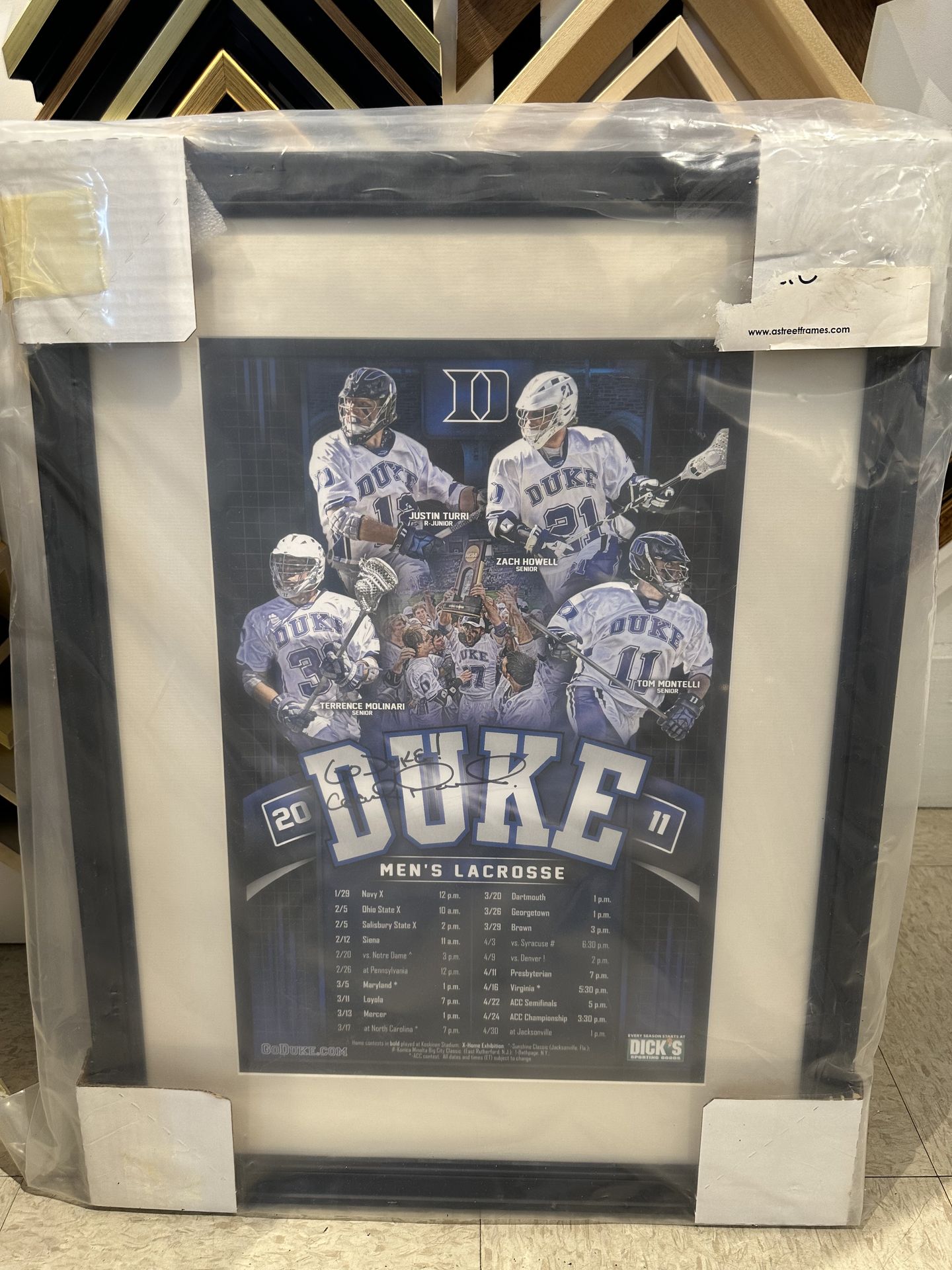 2011 Duke Lacrosse autographed and framed poster. Pick up only