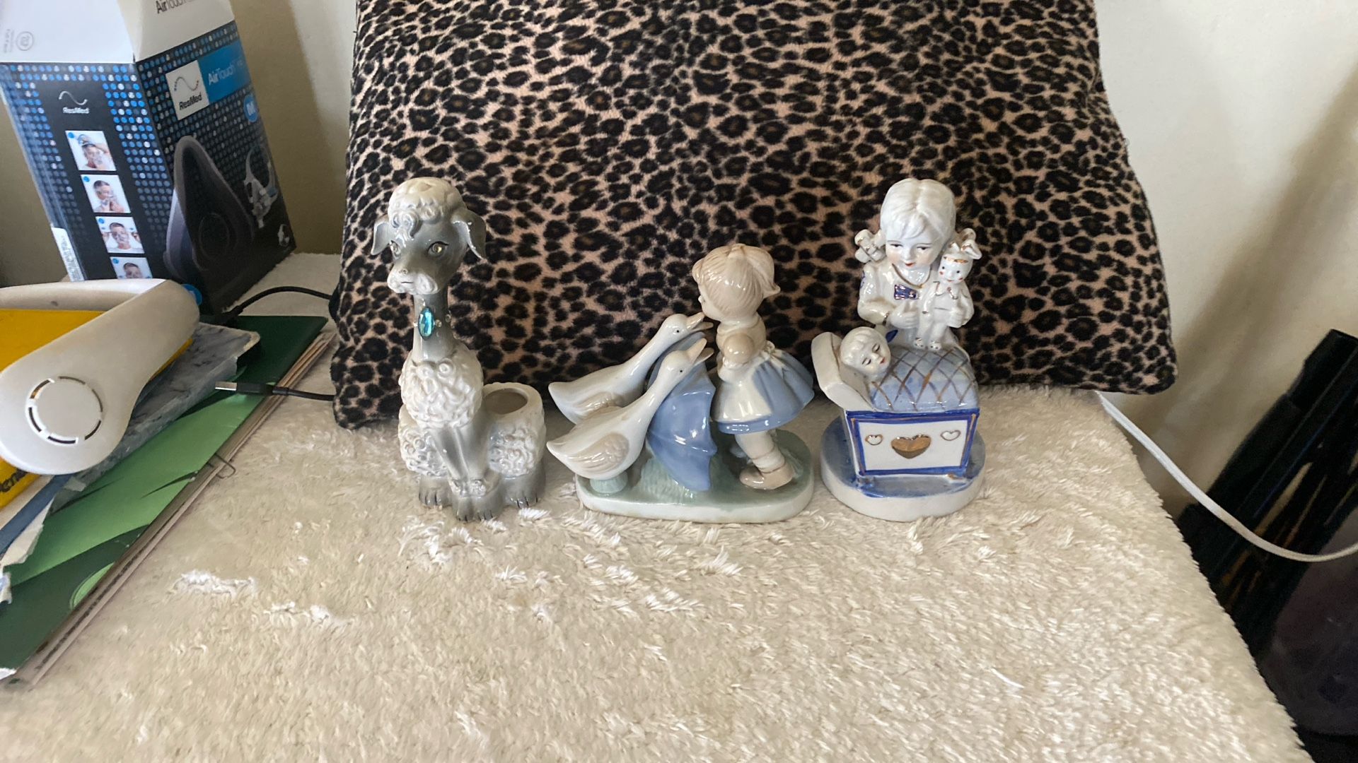 Fancy Poodle with Sprinkles eyes and necklace/. Little Girl with two ducks/ Girl with baby's. All in Good Condition. They are $5.00 each!!