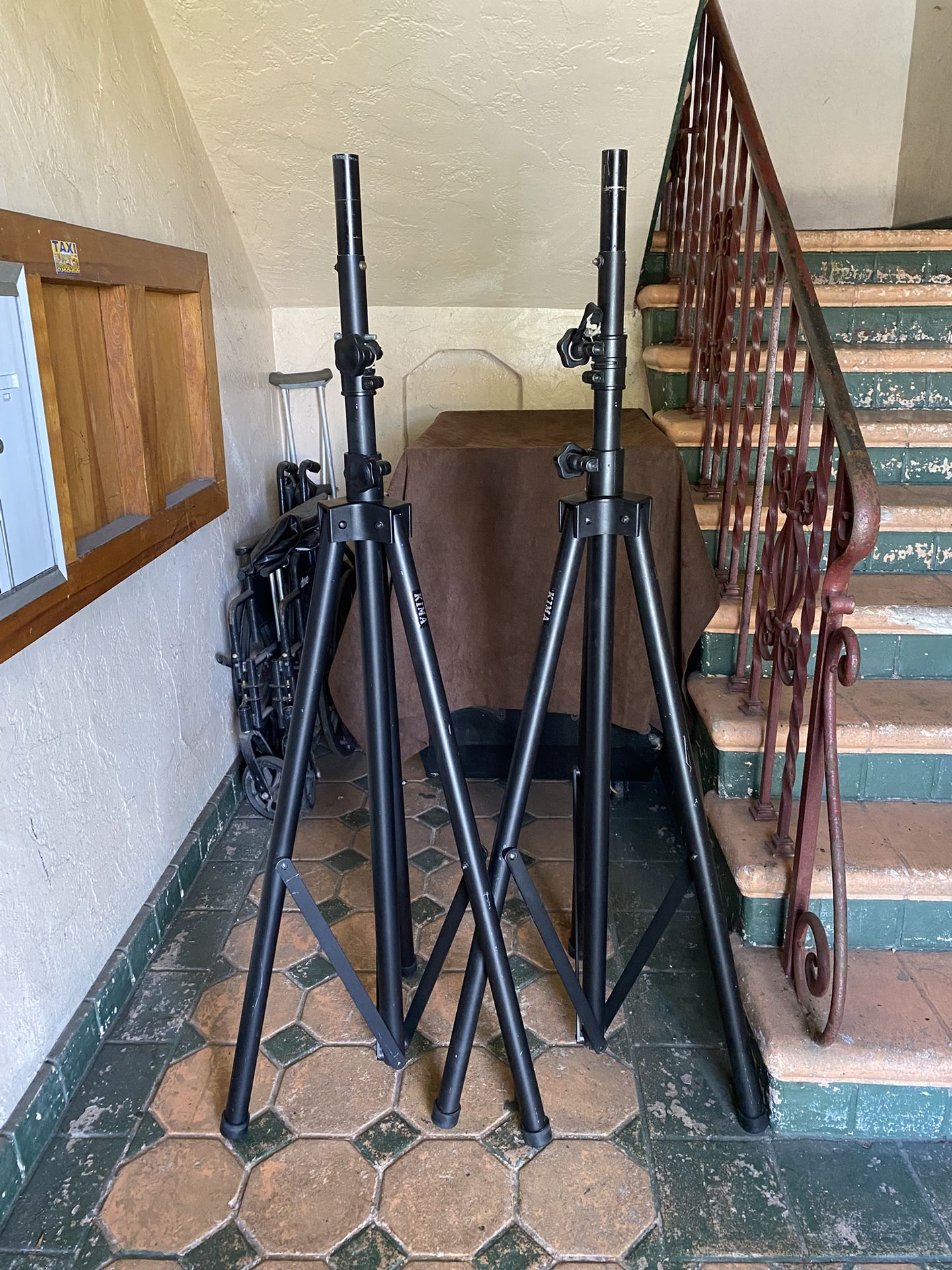 It’s available Dj. $100 Firm high profile aluminum stands Similar equipment available: Mackie. Jbl. Electro Voice. Cerwin Vega. Yamaha. Behringer. B-52. Peavey. Dj Stands. Dj Equipment. Dj Amp. Dj Speakers