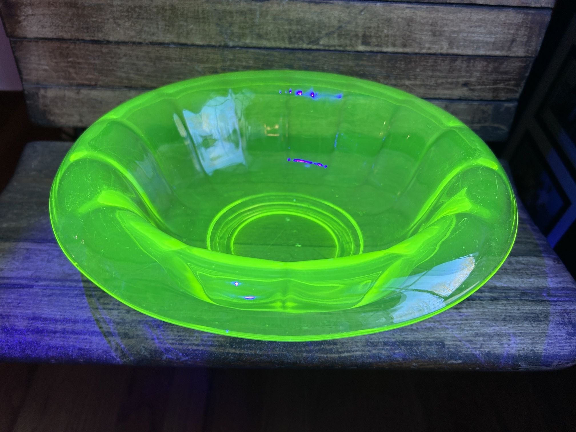 vintage yellow vaseline glass uranium rolled edge console bowl black light glowing