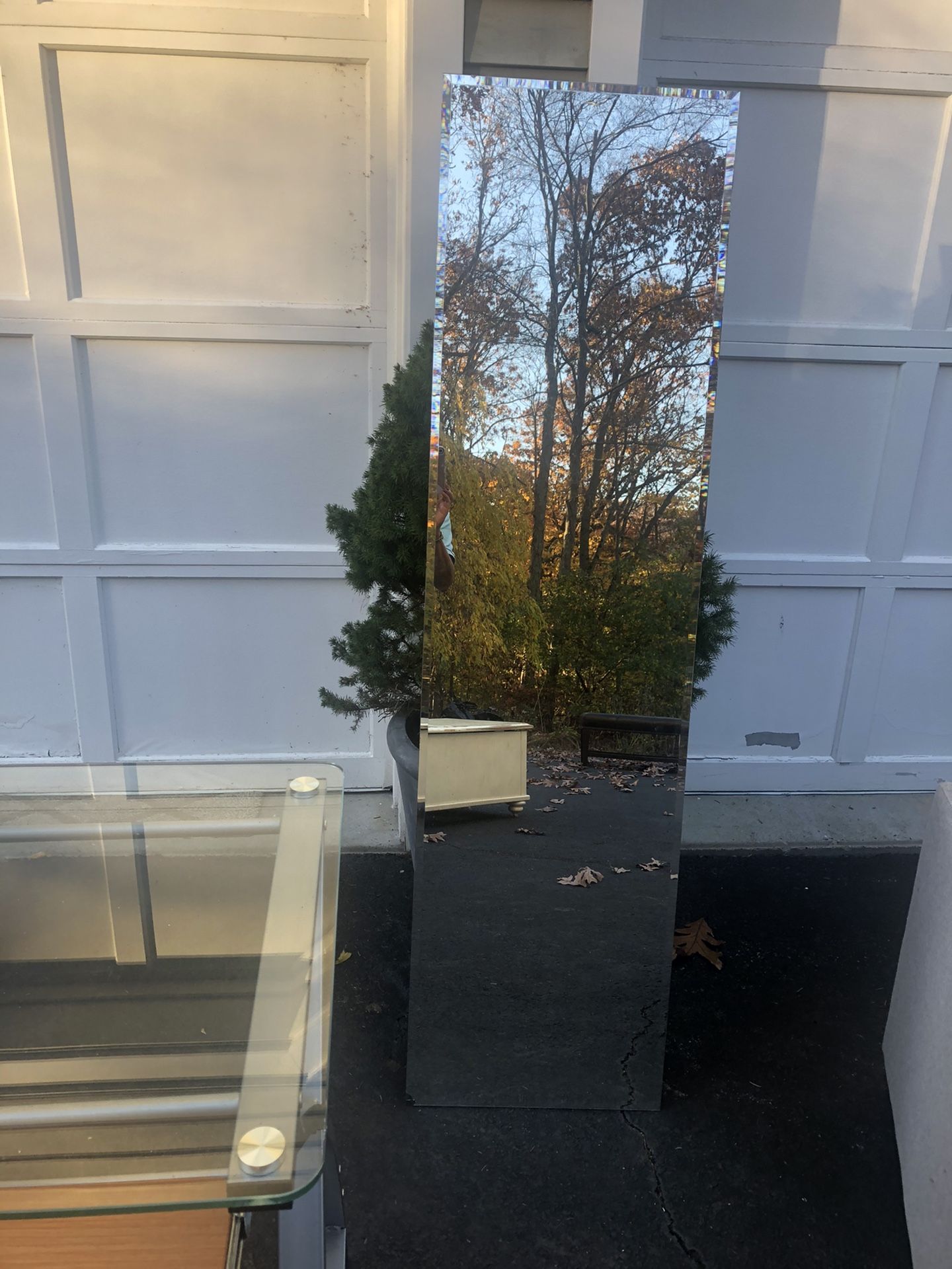 Full length mirror. Beautiful condition, no scratches. 5 feet tall. (Very small chip in bottom corner about just 1/4”)