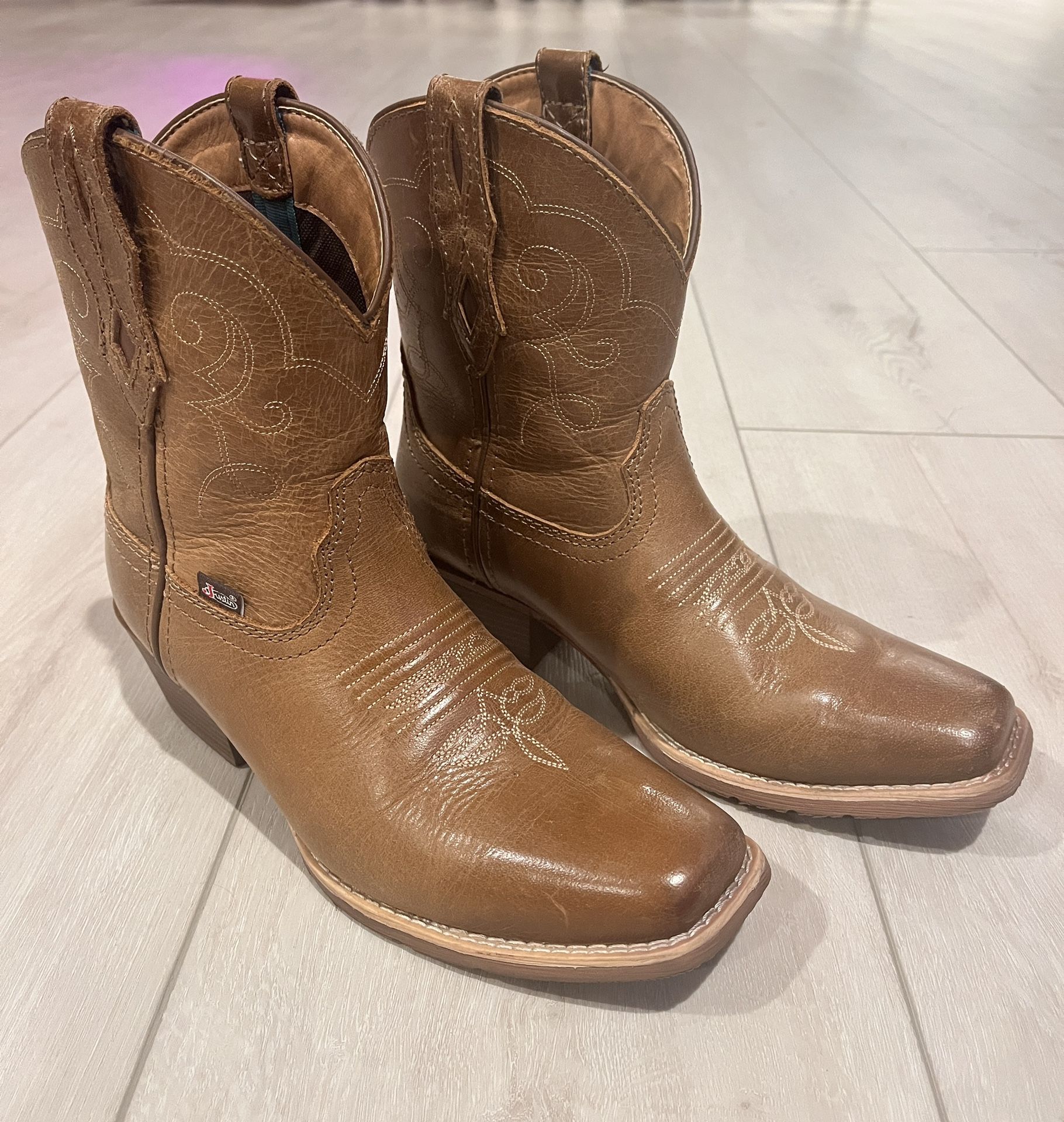 Justin Women’s Square Toe Booties Size 8.5 Leather Upper Purchased from Boot Barn Worn one time indoors. These boots are comfortable but I don’t want to break them in. I’ve stored them in my closet free from dust.