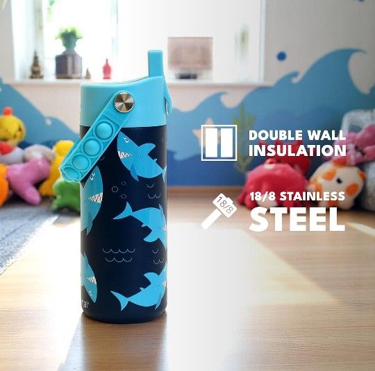 Brand New Insulated Kids Water Bottle, Stainless Steel Water Bottle with Straw Lid & Pop-It Handle, Leak-Proof Water Bottles for School, Boys or Girls