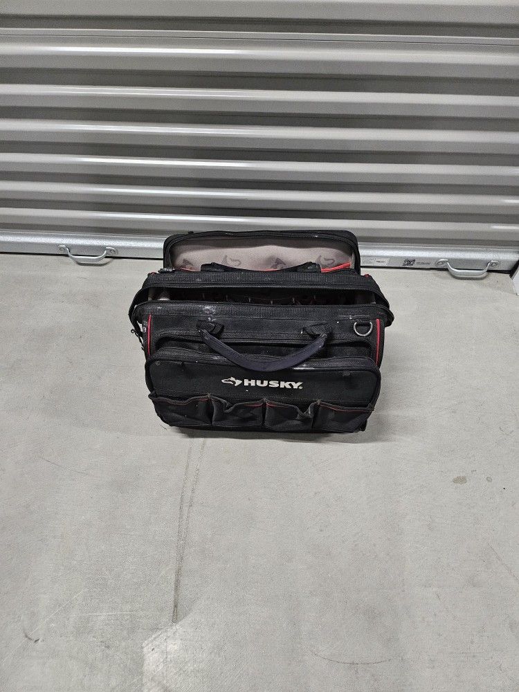 Good condition husky tool bag Hard plastic on the bottom structured Fits a lot