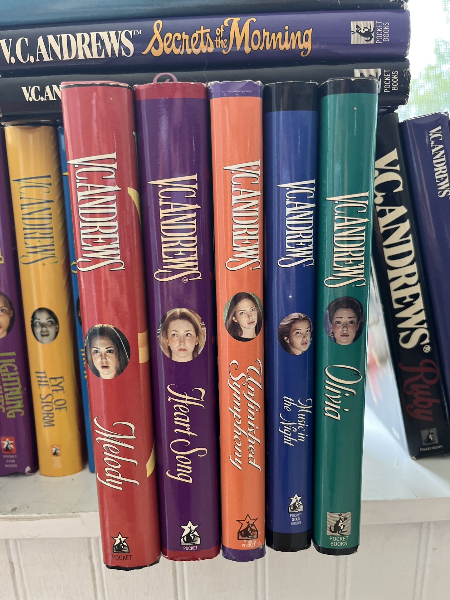 🎼 Melody Logan’s dreams of love and music are shadowed by family secrets and tragic betrayals. A tale of heartbreak and resilience. 📚 Includes ALL 5 Books: • Melody • Heart Song • Unfinished Symphony • Music in the Night • Olivia’s Song 💲 Price: $40 OBO ✨ Or scoop up ALL the gothic sagas (RARE collection of 40+ books total) for $250 OBO!