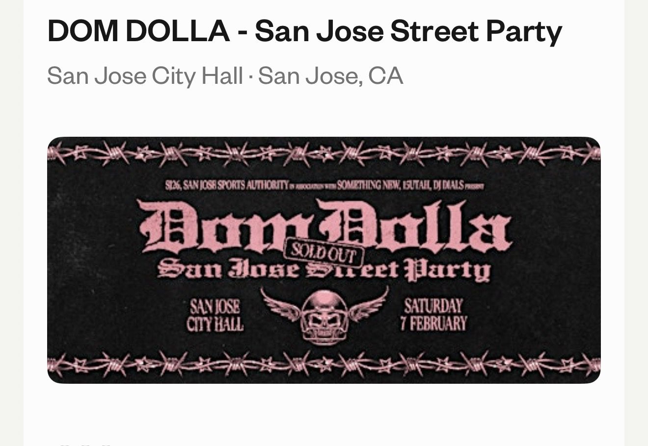 2 Dom Dolla VIP Tickets For San Jose Block Party
