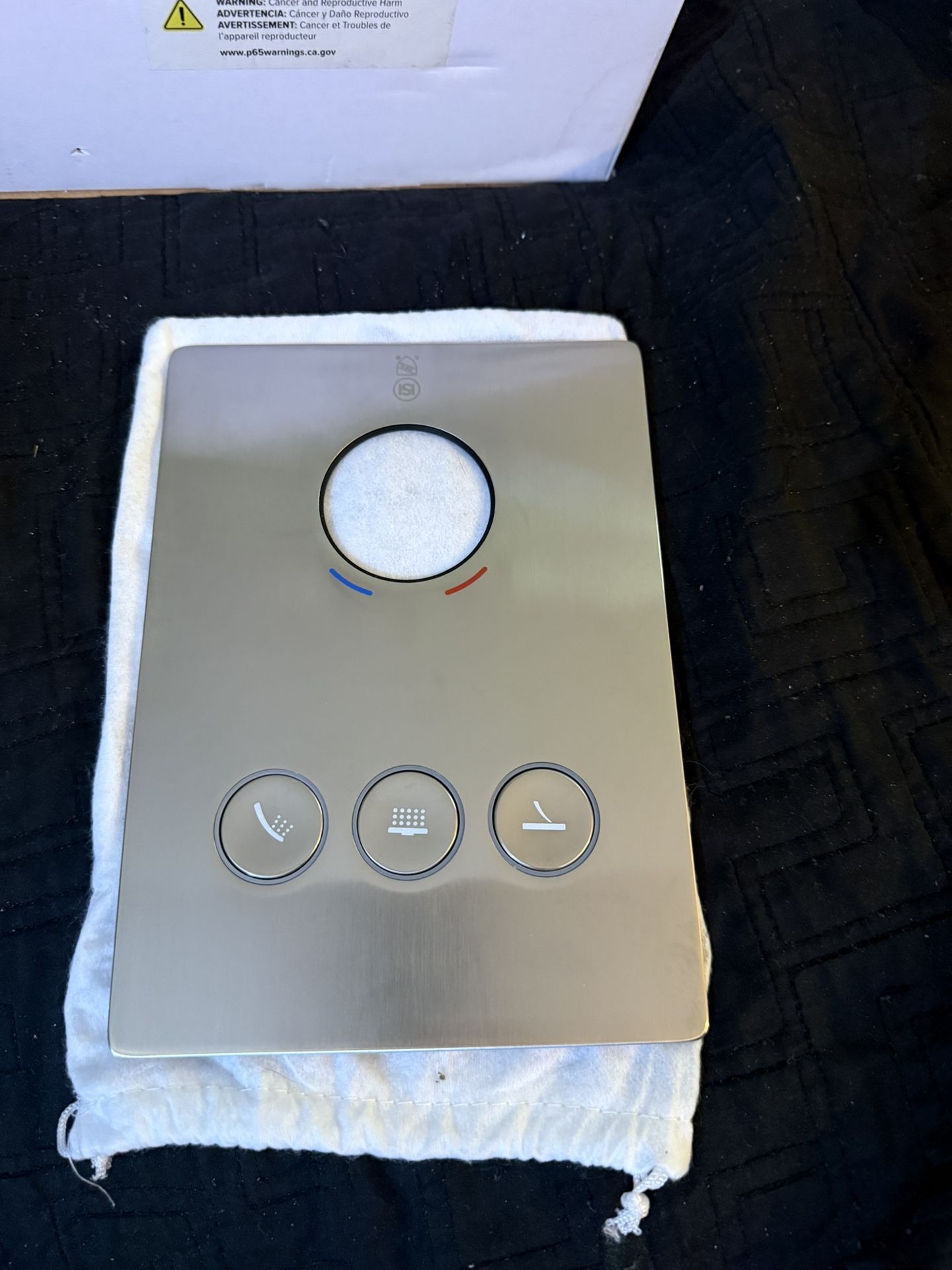 The FH 7301A-687-BN Hollyn Simple Select 3-Way Thermostatic Valve by Signature Hardware is a sleek and stylish addition to any bathroom. This wall-mounted valve offers a convenient 3-way setting for a customizable shower experience. The brushed nickel finish adds a touch of elegance, while the high-quality construction ensures durability and reliability. With a minimum pressure requirement of 45 Psi, this valve is suitable for use in showers and offers a versatile solution for controlling water temperature. This item is brand new still in box and soft bags for the brushed nickel trim. The box is missing the top flap but will be protected during shipping or transporting.